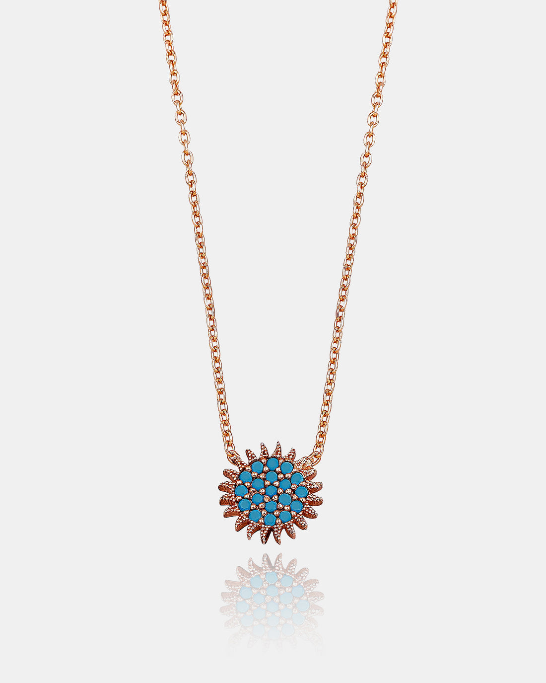 Turquoise Gemstone Sun Necklace - Rose Gold Color Sun Necklace - 925 Sterling Silver Sun Pendant - Minimalist Jewelry