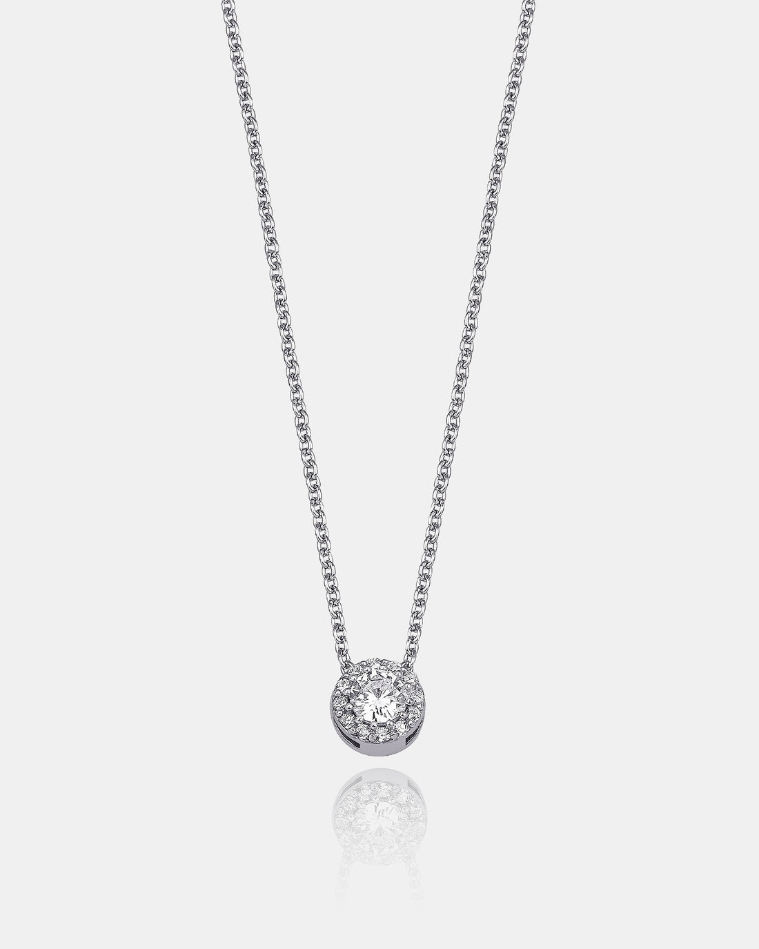 Dainty Sterling Silver Drop Necklace Created With Zirconia | Sterling Silver Small Round Pendant Necklace | White Drop Zirconia Pendant