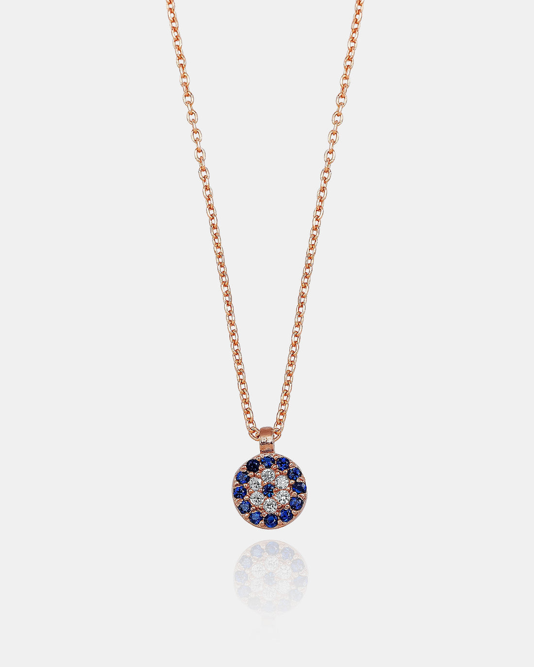 Minimalist Evil Eye Necklace - Blue Eye Protection Necklace - 925 Sterling Silver Jewelry - Silver & Rose Gold Chain