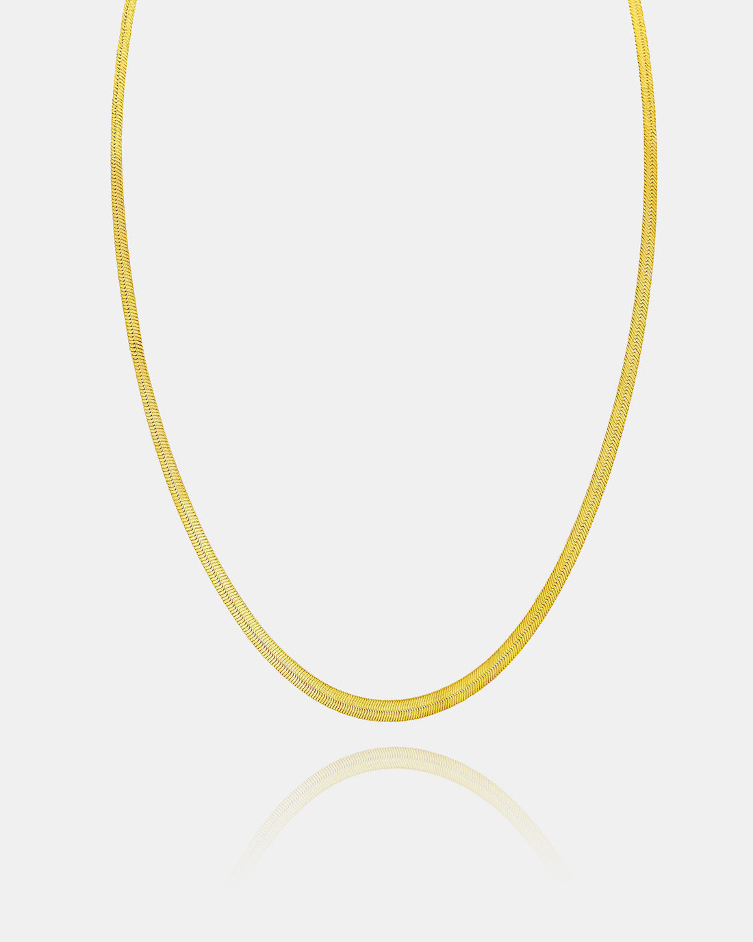 Gold Color Sterling Silver Flat Chain - Gold Snake Chain Necklace - Dainty 3 Mm Flat Herringbone Chain - Layering Necklace - Unisex Gift
