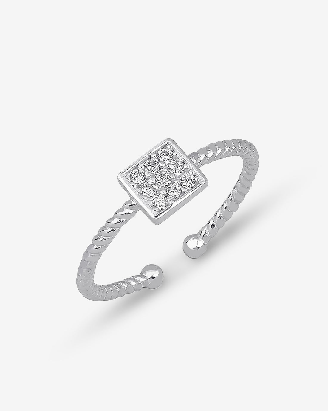 Radiant Cut Square Ring With Zirconia - Modern & Minimalist Geometric Design - Sterling Silver Adjustable Square Ring - Summer Unique Gift