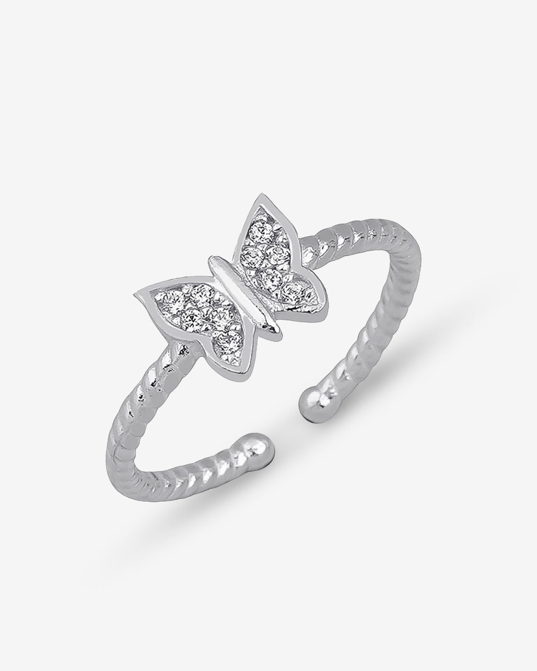 Minimalist & Delicate Butterfly Ring - 925 Sterling Silver Dainty Adjustable Butterfly Ring - Cubic Zirconia Jewelry - Best Friend Gift