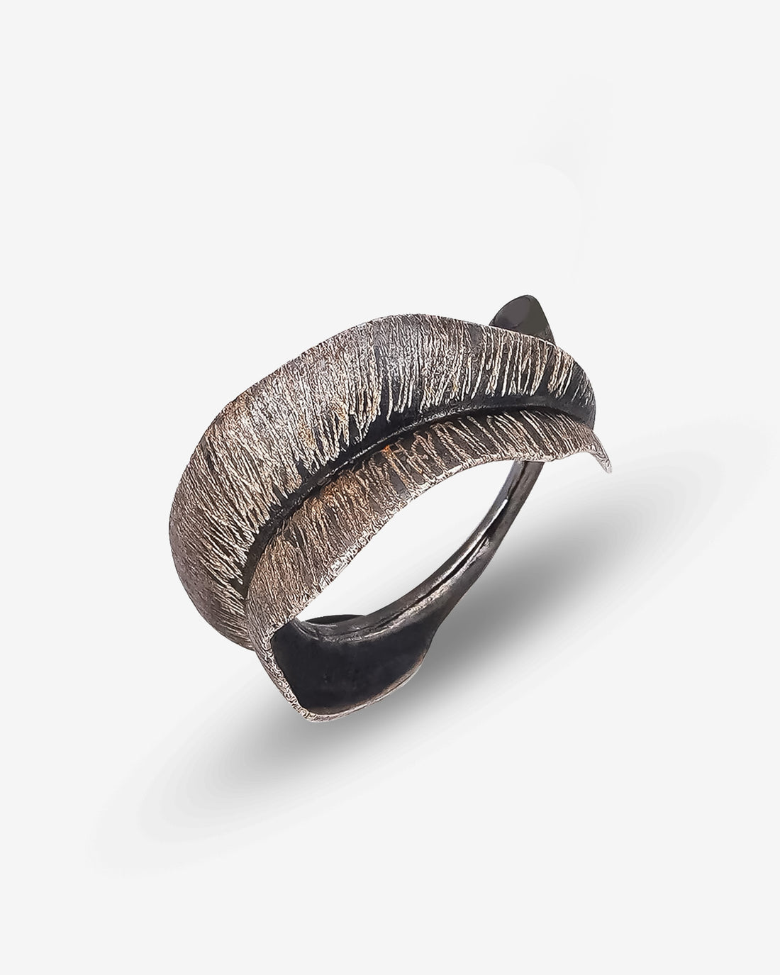 Adjustable rustic feather ring This ring features a delicately sculpted feather design in sterling silver,...