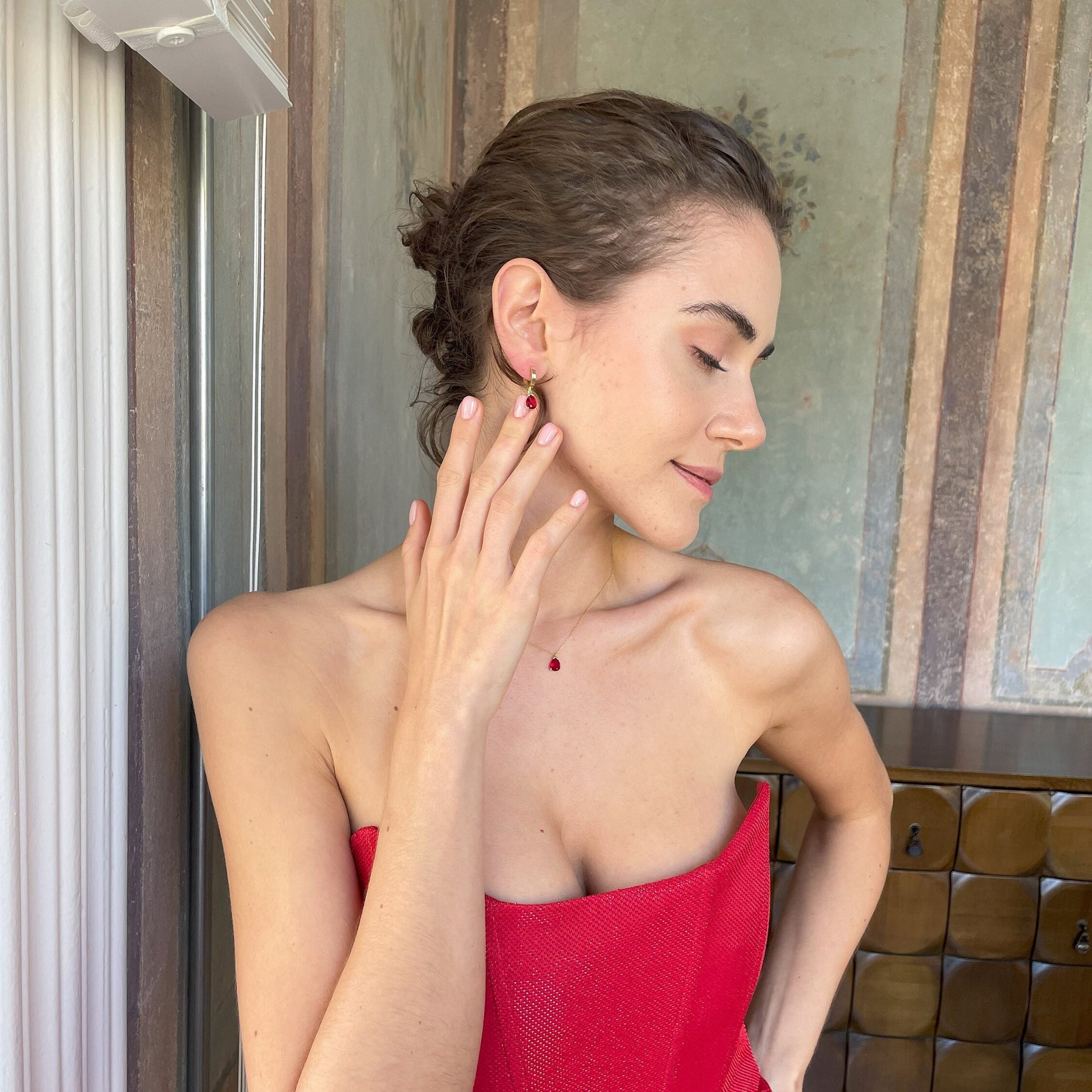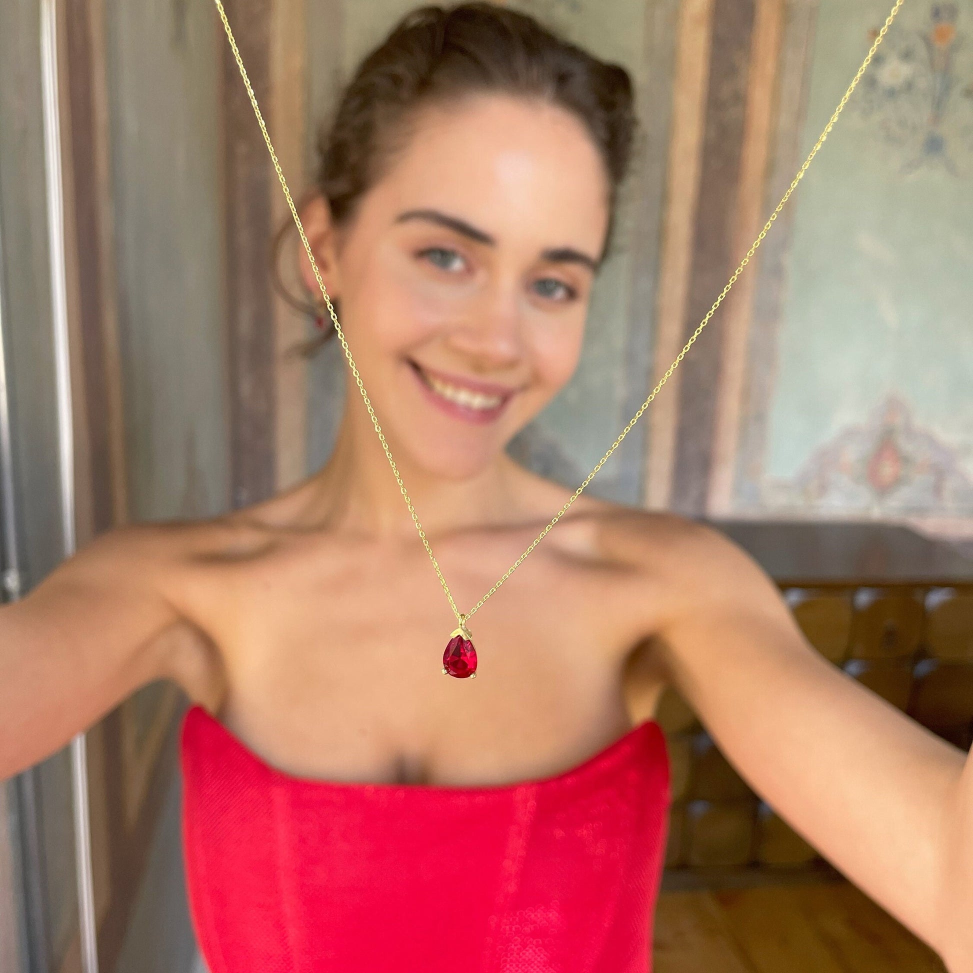 Birthstone Jewelry Set - Mothers Day Birthstone Gift - Red Garnet Sterling Silver Necklace & Earrings - January / July Birthstone