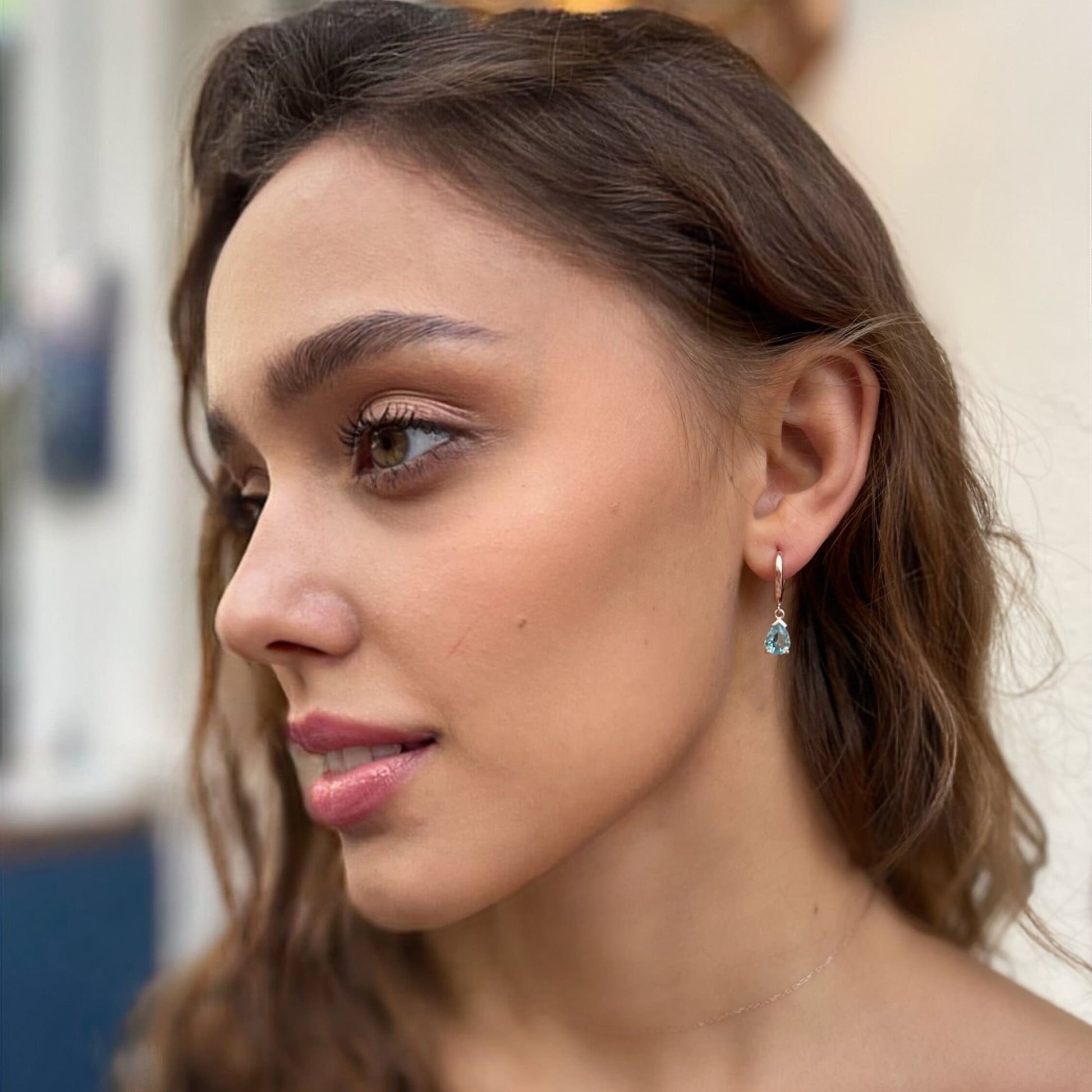 Blue Zircon Drop Birthstone Earrings - Aquamarine/emerald/garnet/sapphire Dangle Earrings - Dainty Silver Hoops - Summer Jewelry
