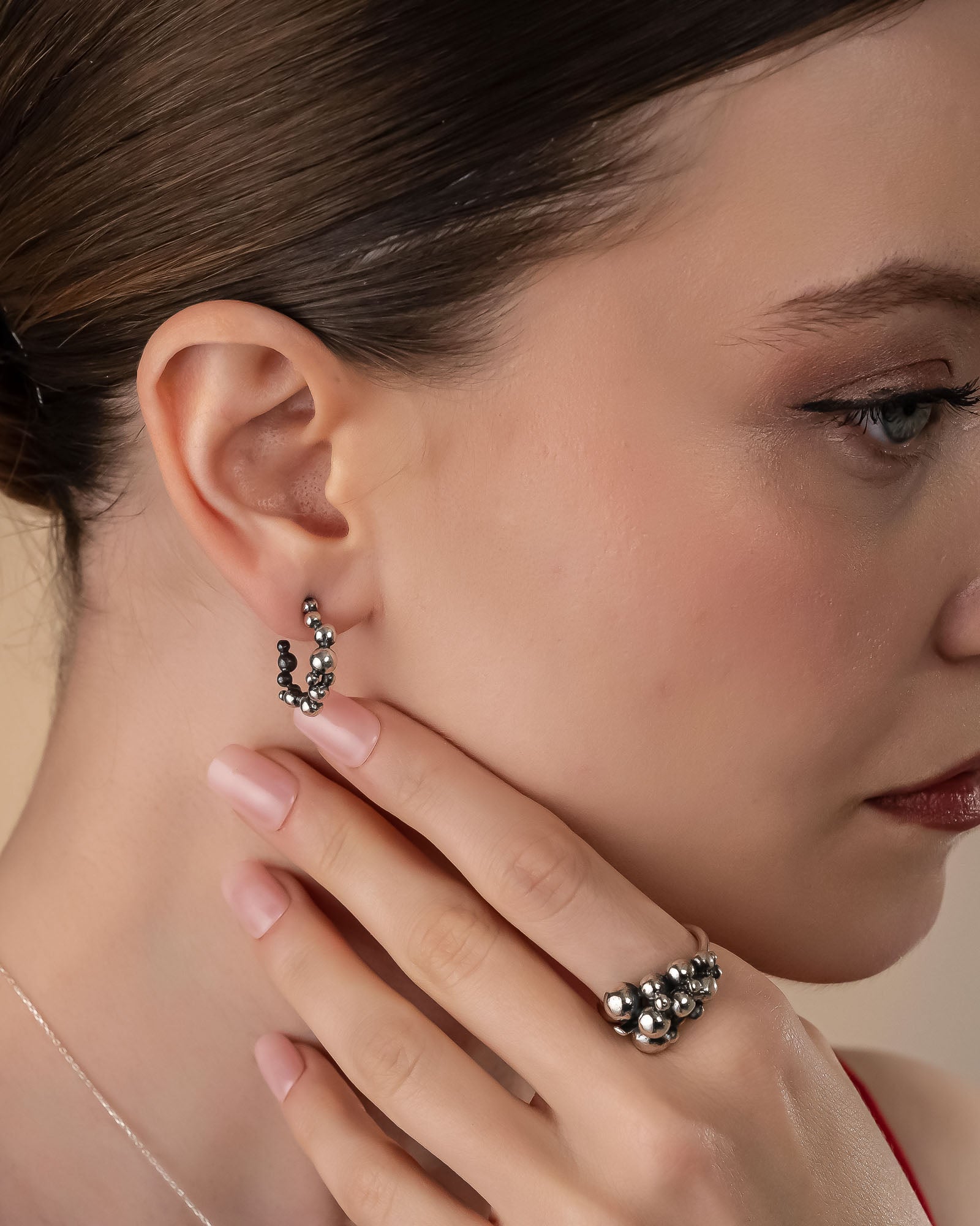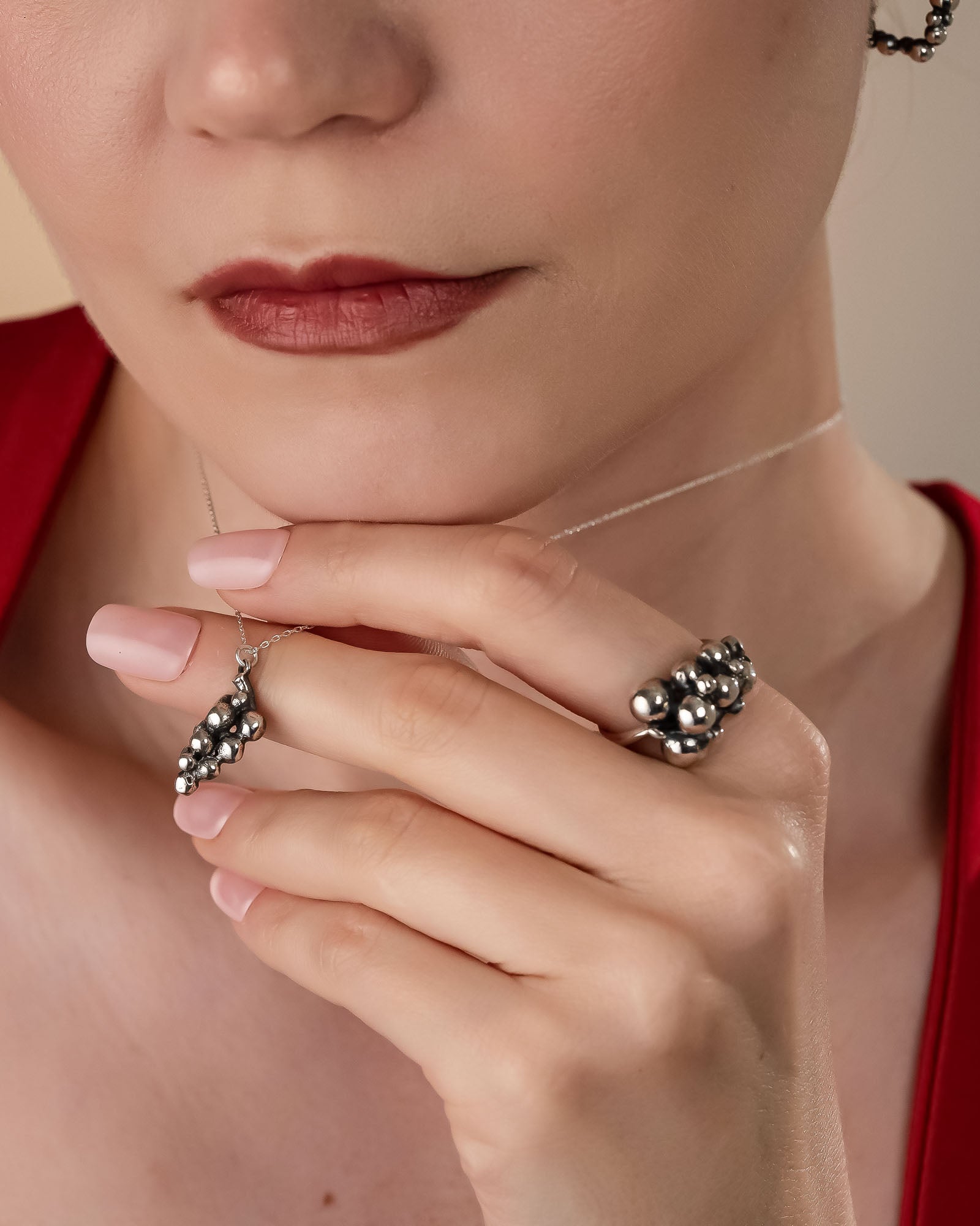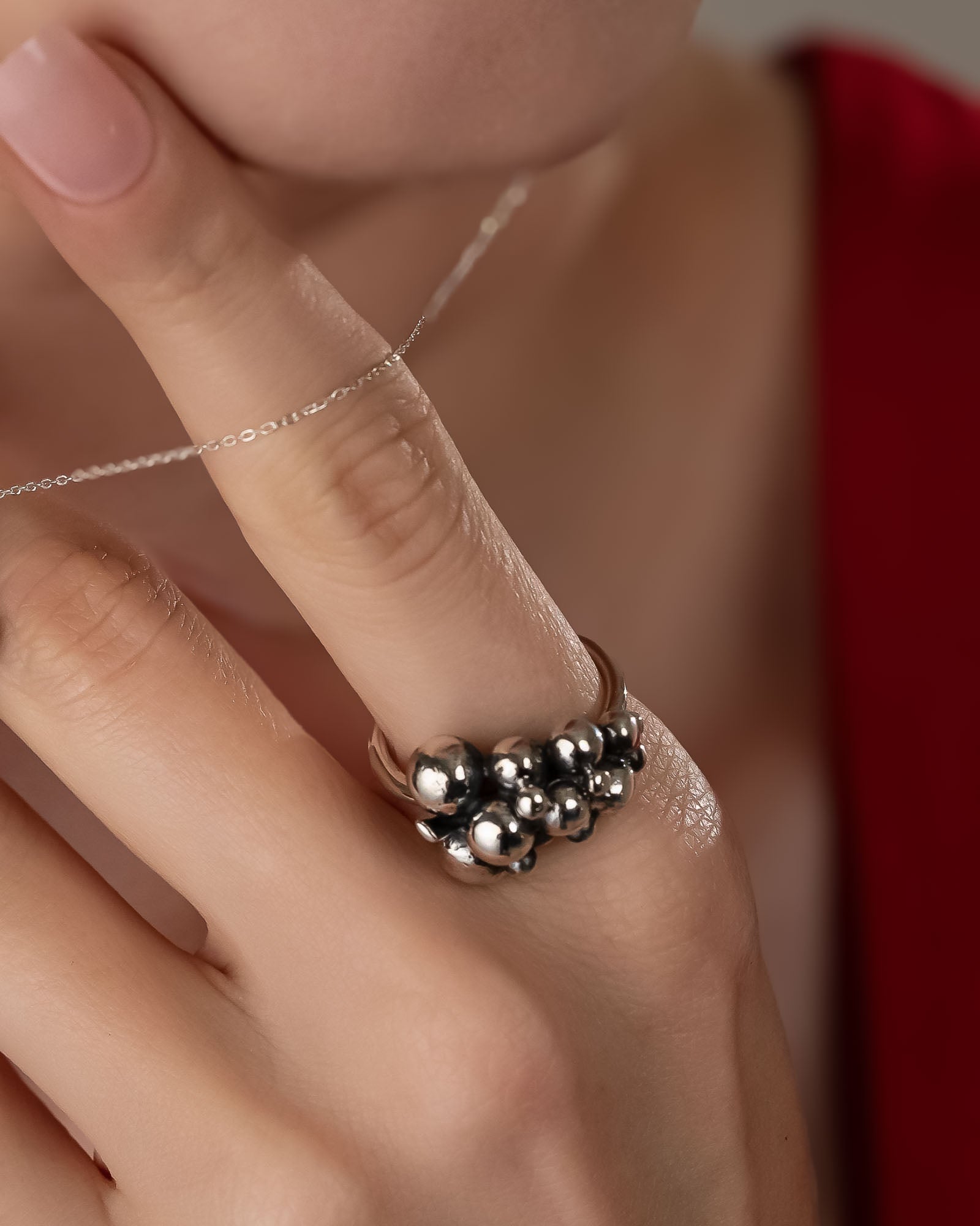 Chunky Silver Bead Cluster Ring , Grape Cluster Inspired Ring , Handmade Bubble Ring , Bold Statement Ring For Women, Boho Bold Ring