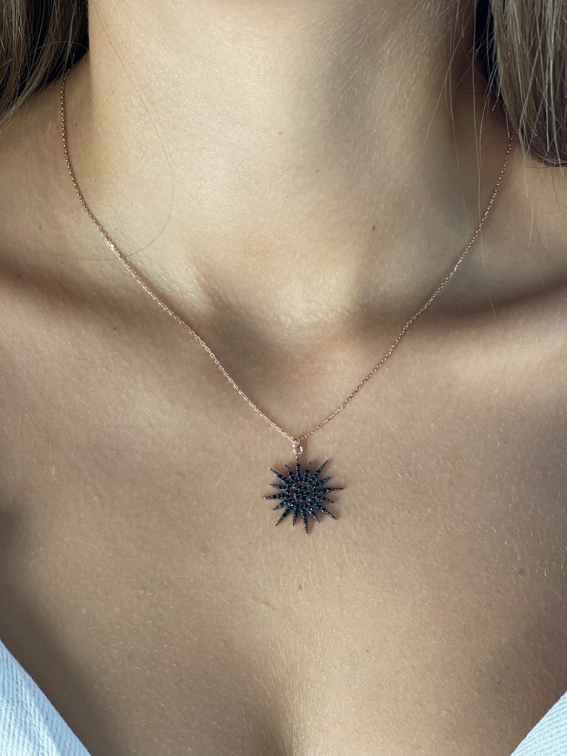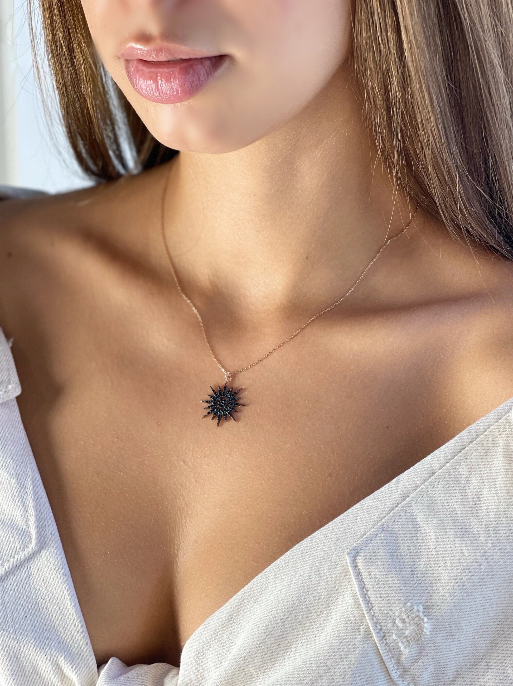 Cosmic Star Necklace, North Star Jewelry Pendant, , Starburst Pave Necklace, Delicate Silver Necklace
