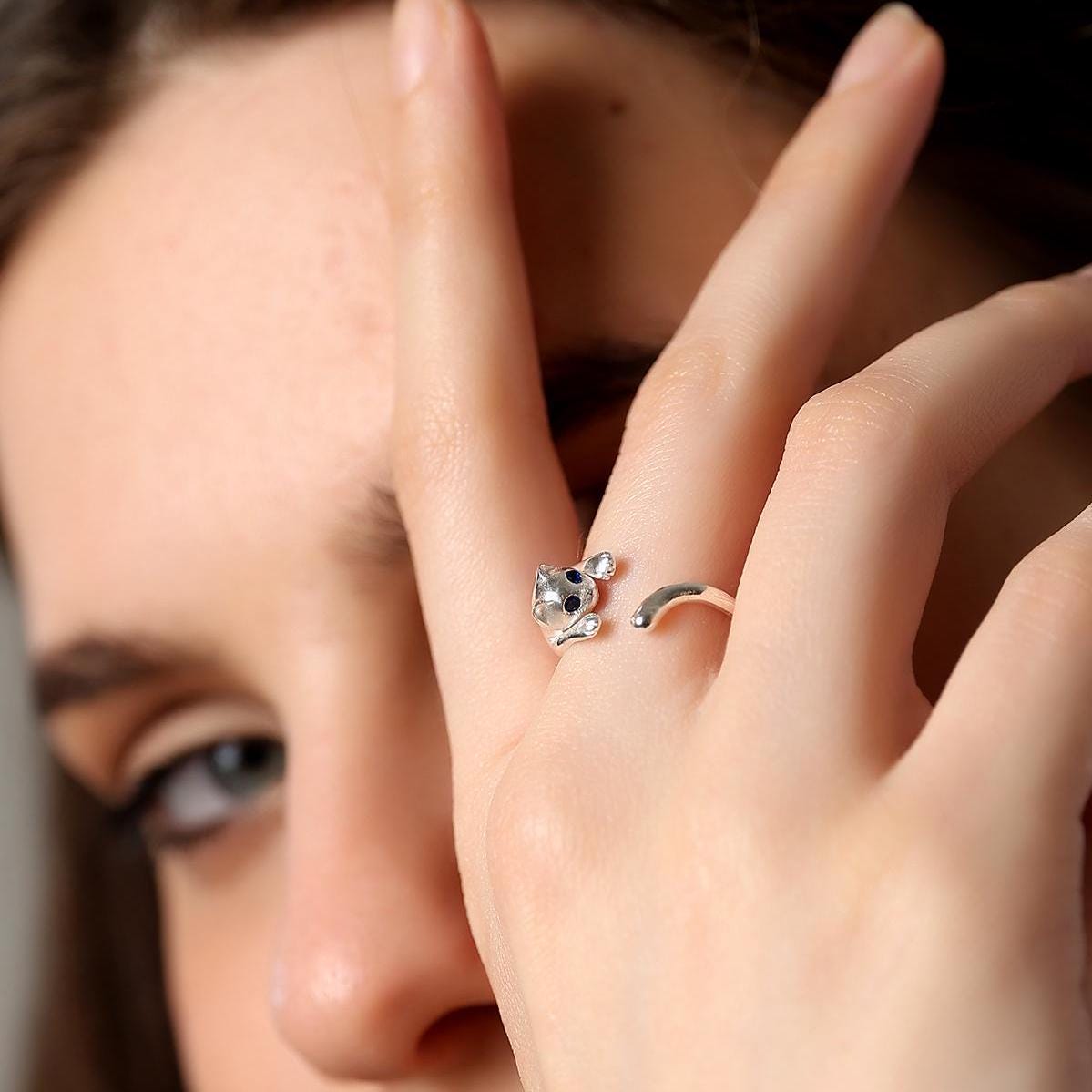 Cute Cat Wraparound Ring , Feline Silver Adjustable Ring , Kitty Hug Silver Ring , Handmade Cat Wrap Ring , Personalized Gift For Cat Lovers
