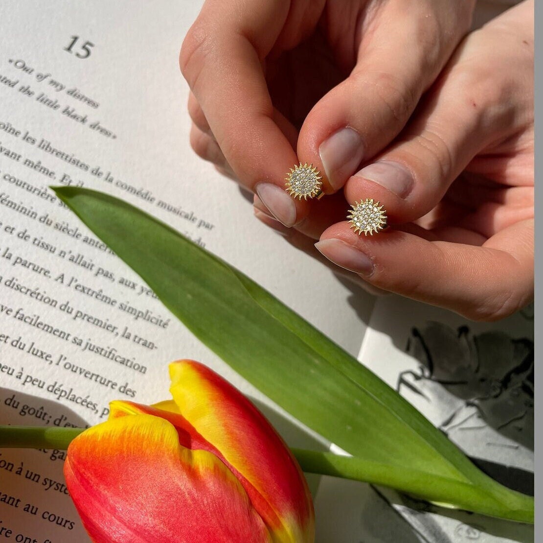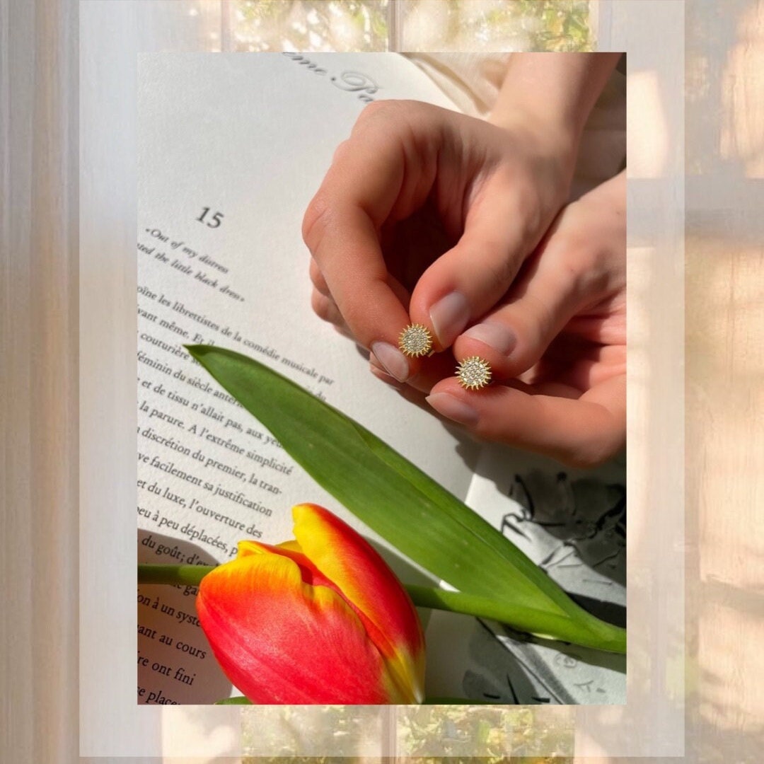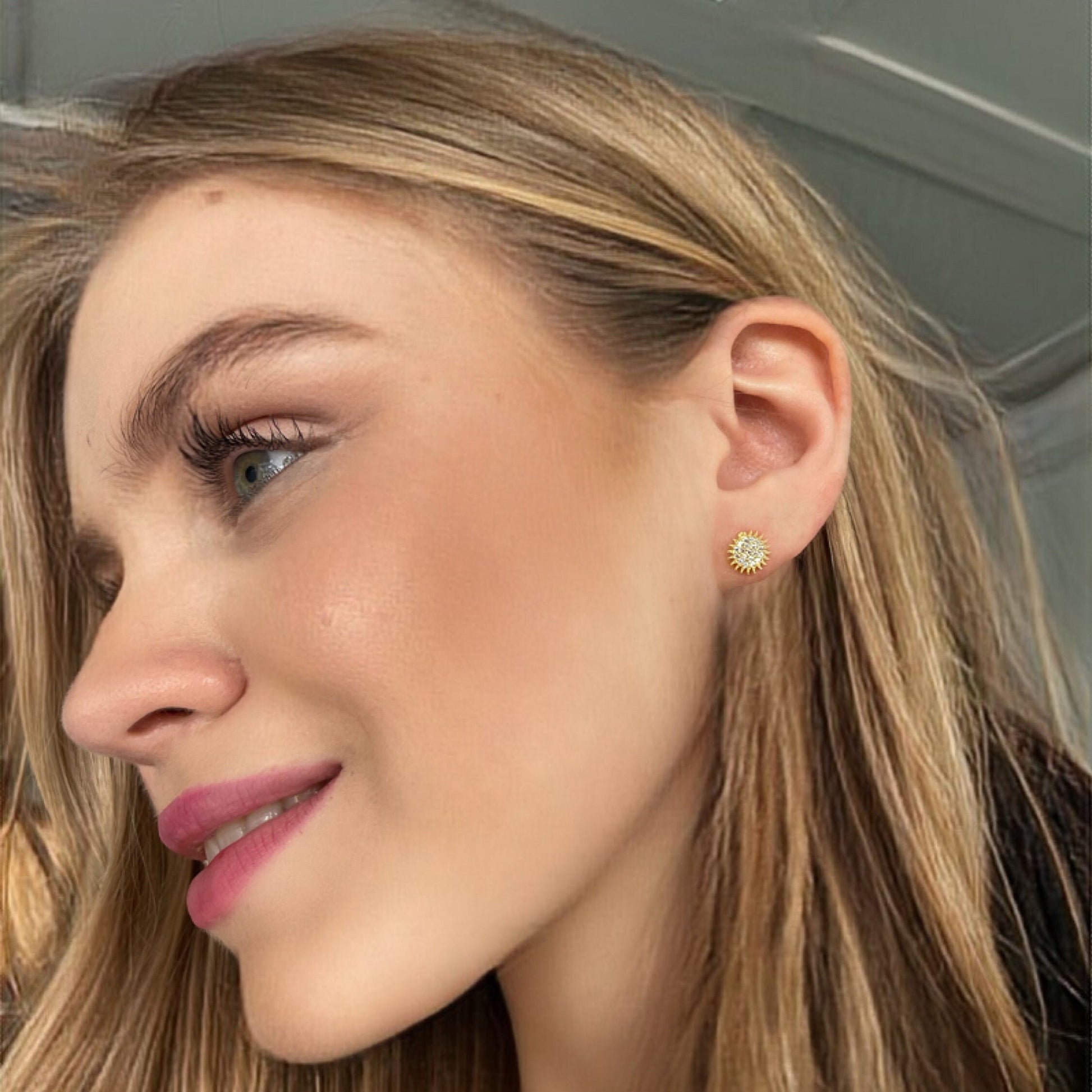 Dainty Radiant Sun Stud Earring - Sparkling Sun Gold Color Earrings - Minimalist Earrings - Sterling Silver Handmade Jewelry