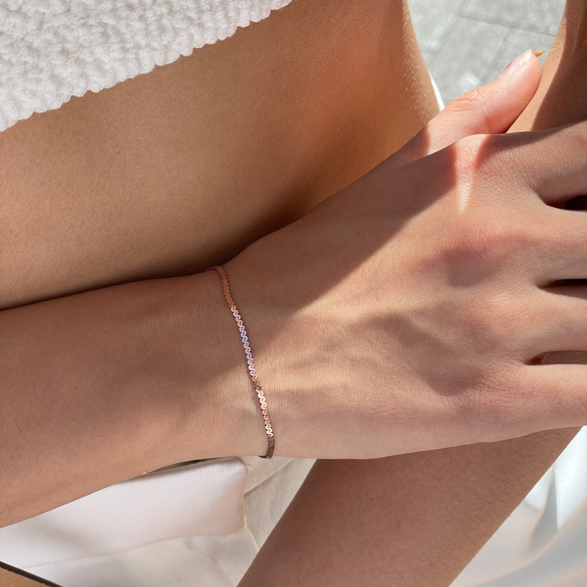 Dainty Serpentine Chain Bracelet - Rose Gold/silver Flat Chain Bracelet - Italian Bracelet - Sterling Silver Jewelry - Ideas