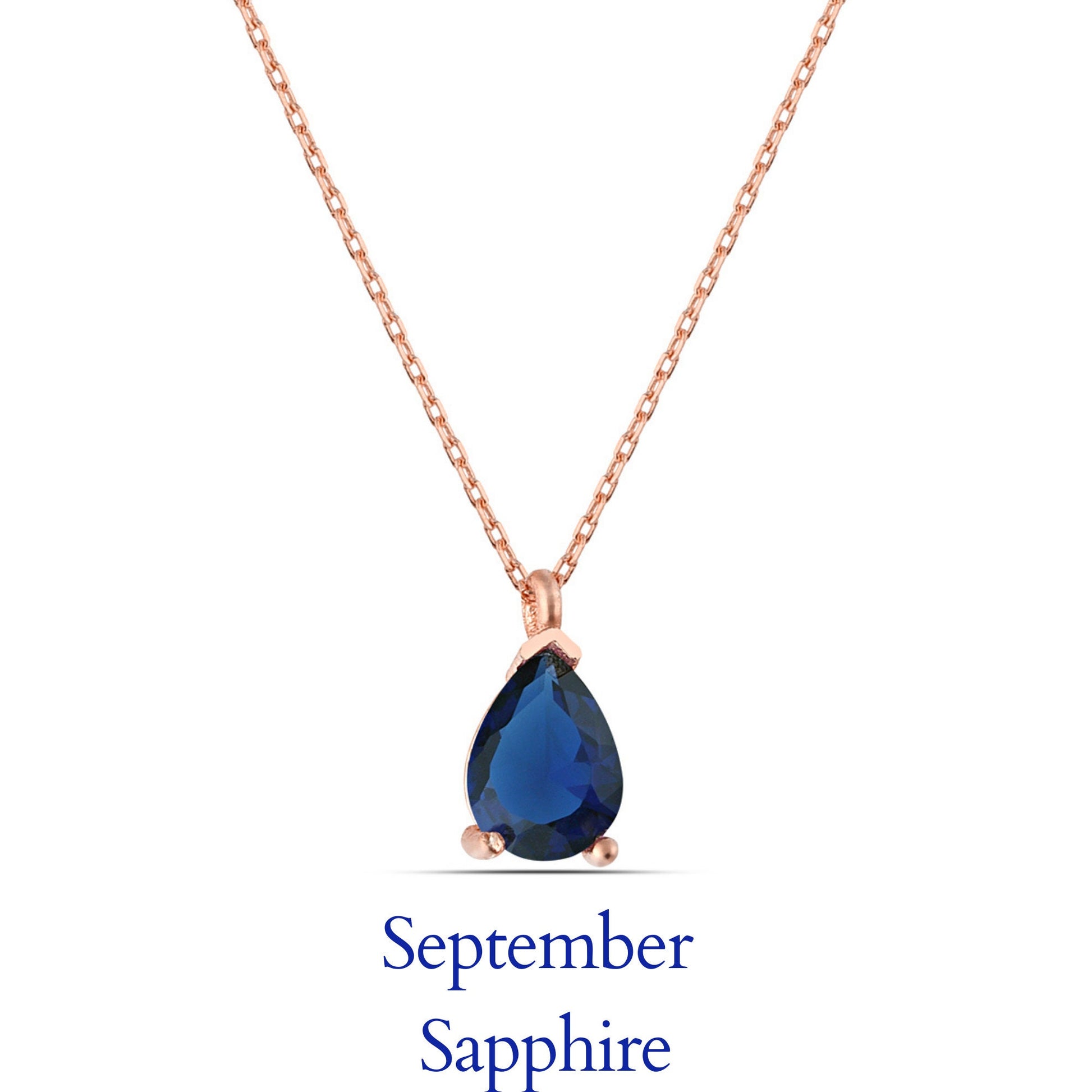 Drop Birthstone Silver Necklace - Zircon Dainty Necklace - Blue Zircon Necklace - Delicate Silver Necklace -