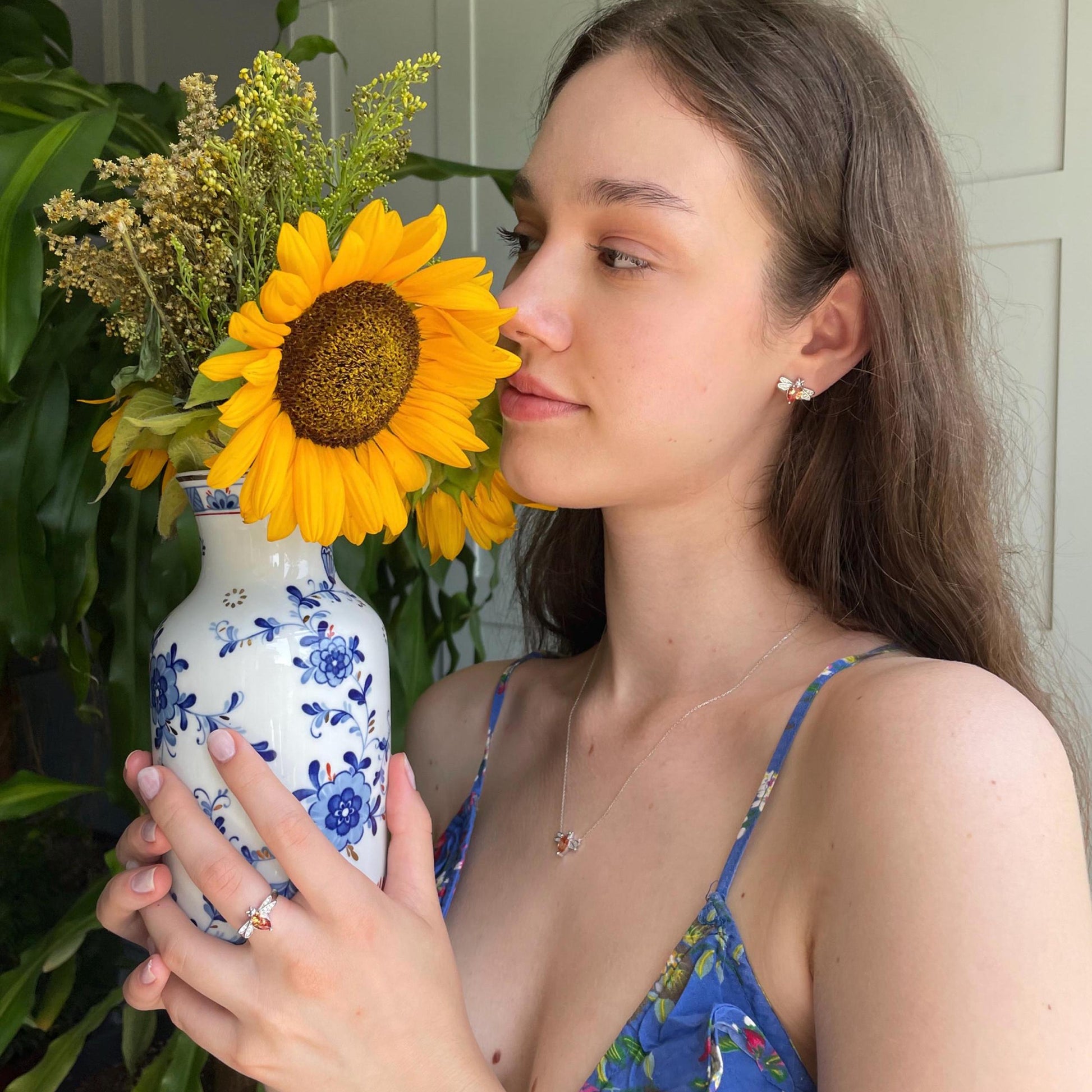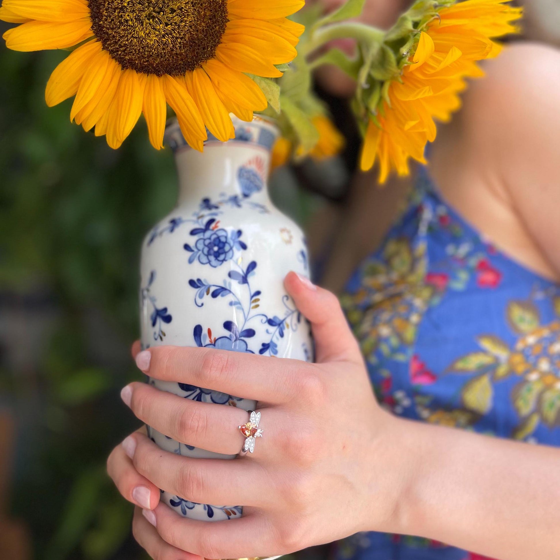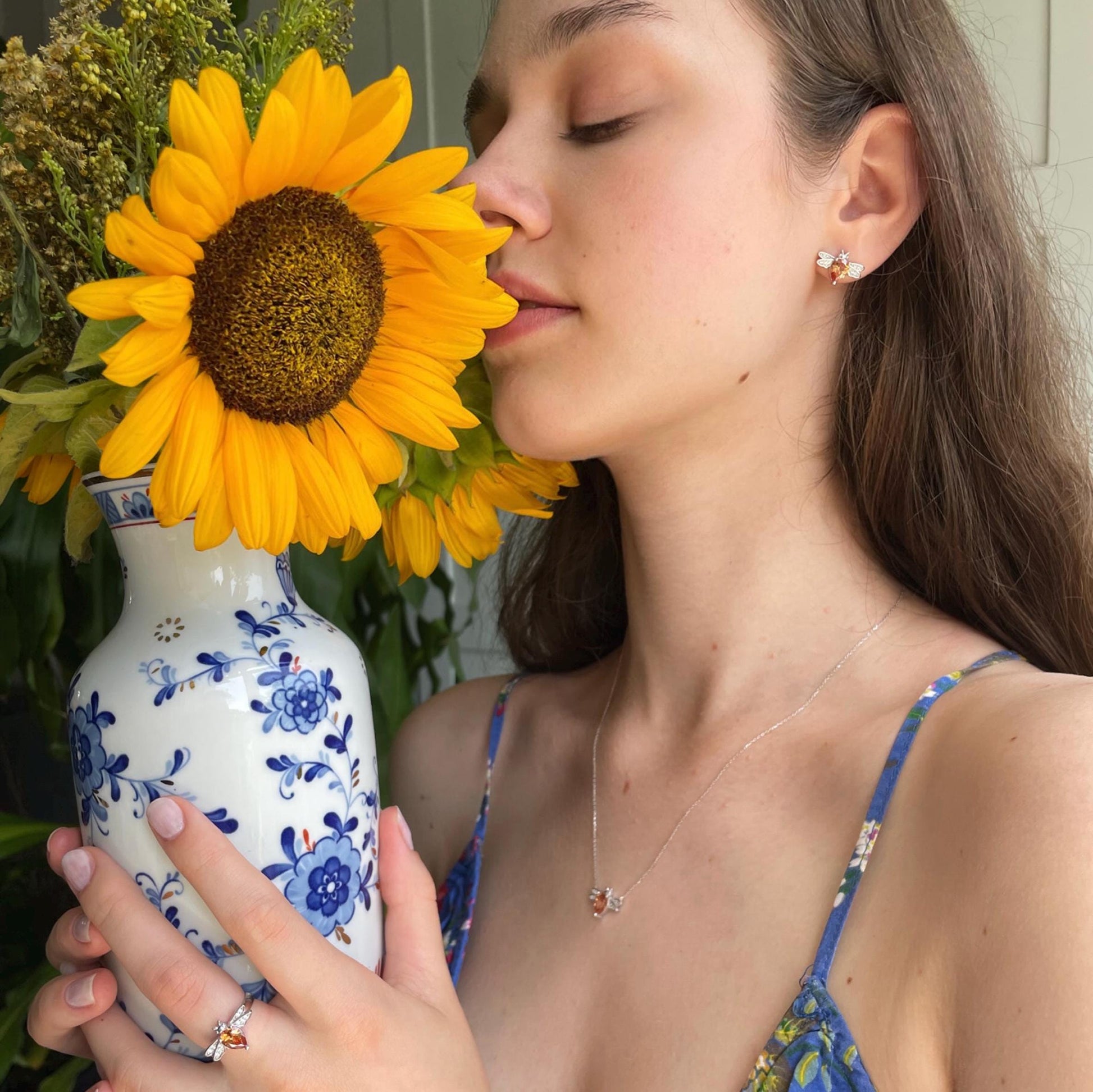 Elegant Beefancy Jewelry Set - Honeybee Inspired Necklace, Earrings And Ring Ensemble - Champagne Gemstone Stylish Honeybee Trio Set