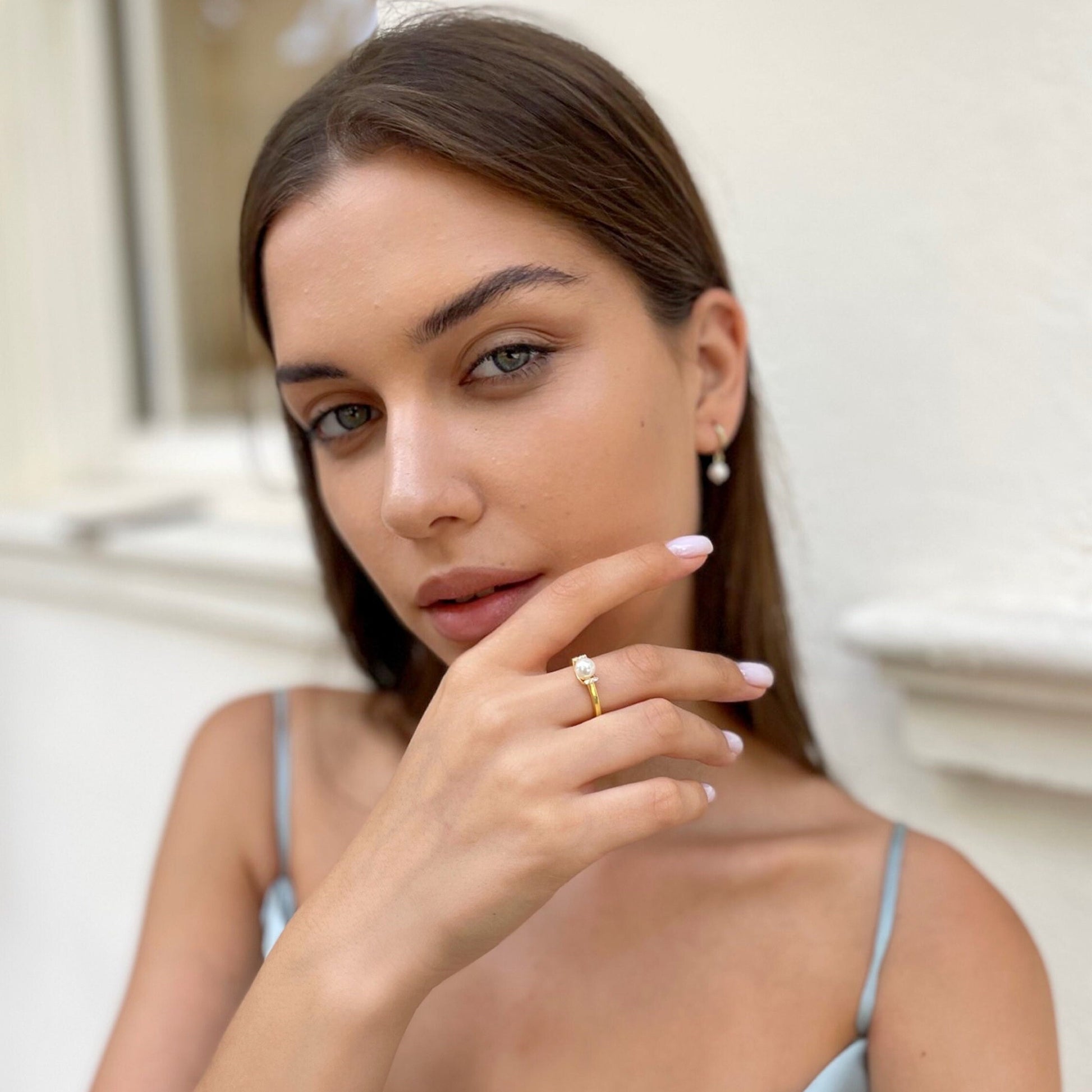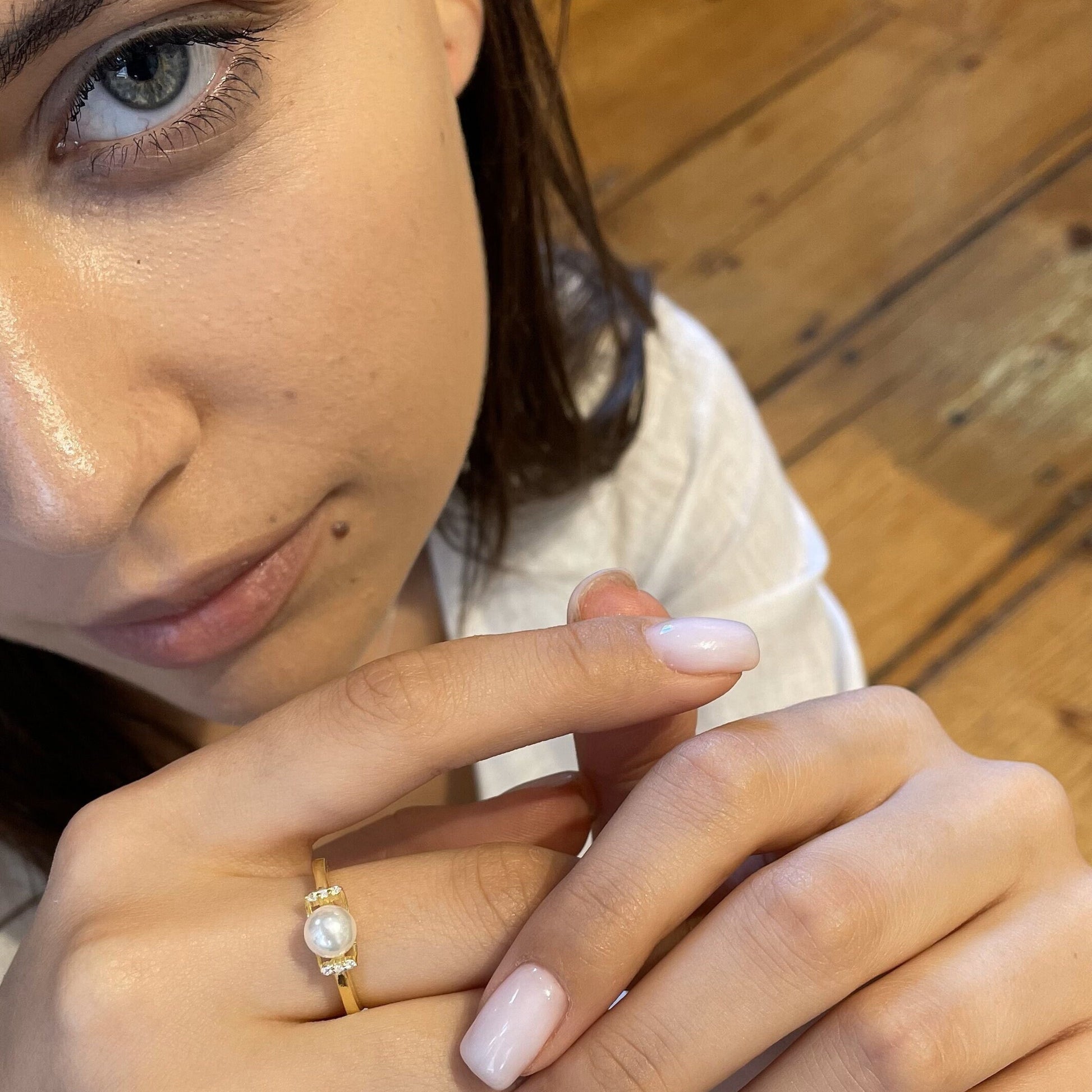 Elegant Pearl And Cubic Zirconia Ring - Gold Color Ring - Adjustable Minimalist Pearl Ring - - Gold/silver/rose Colors
