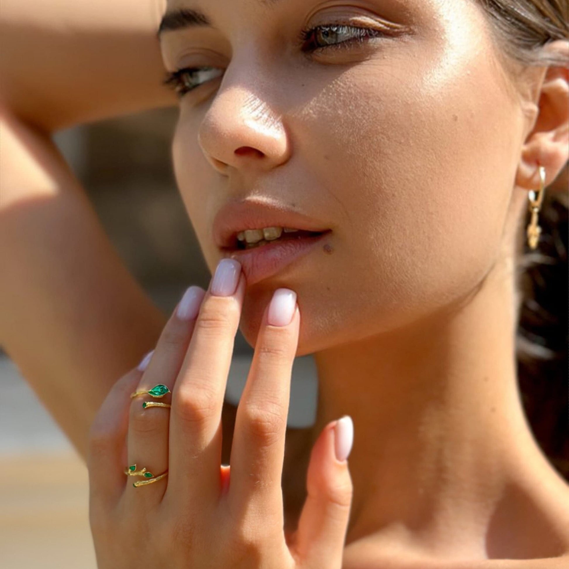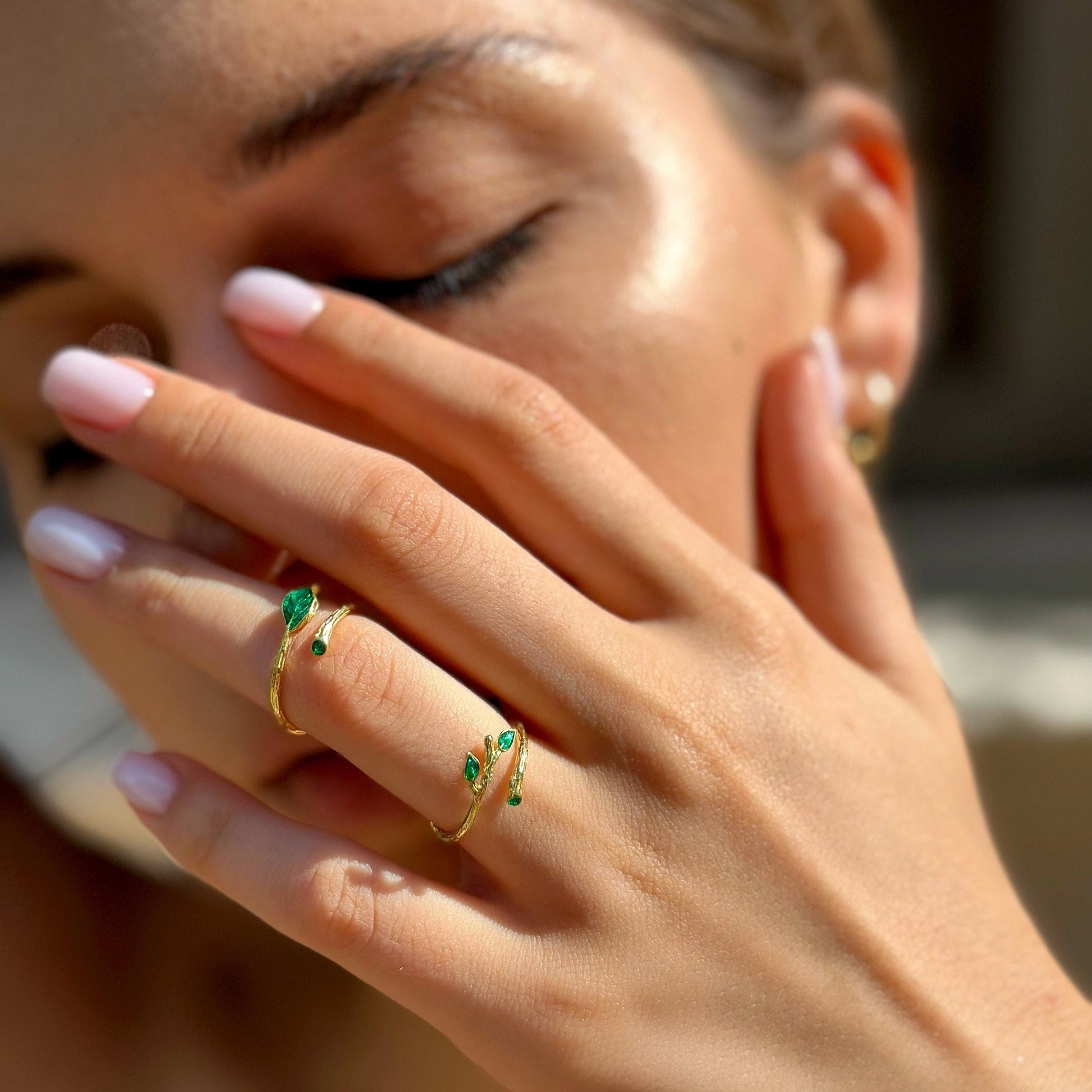 Emerald Ivy Ring - Adjustable Green Leaf Ring - Nature Lover Gift - Ivy Wrap Ring - Minimalist 925 Sterling Silver Jewelry