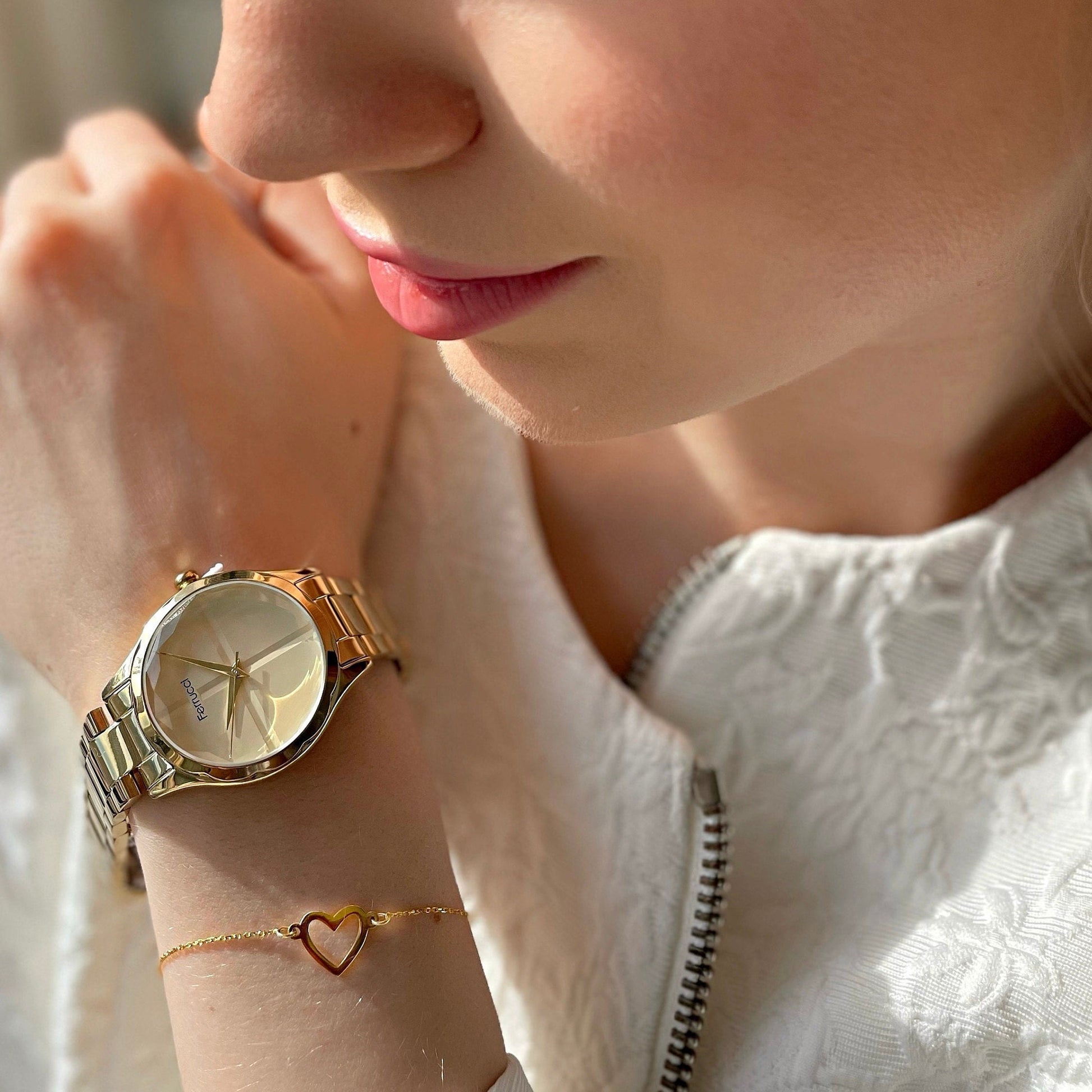 Gold Color Heart Charm Bracelet - Minimalist & Dainty Heart Jewelry - 925 Sterling Silver - Charming Heart Pendant - Romantic