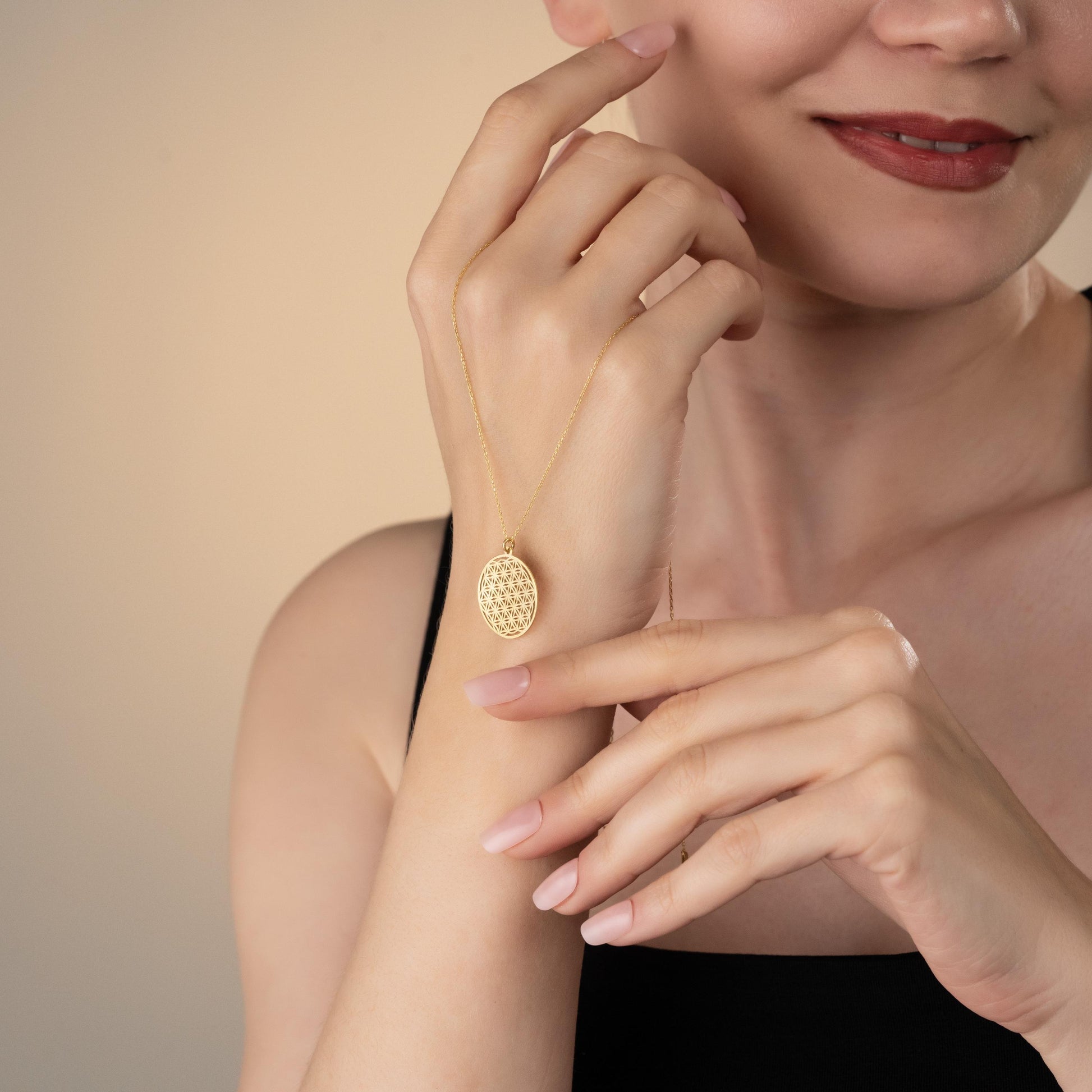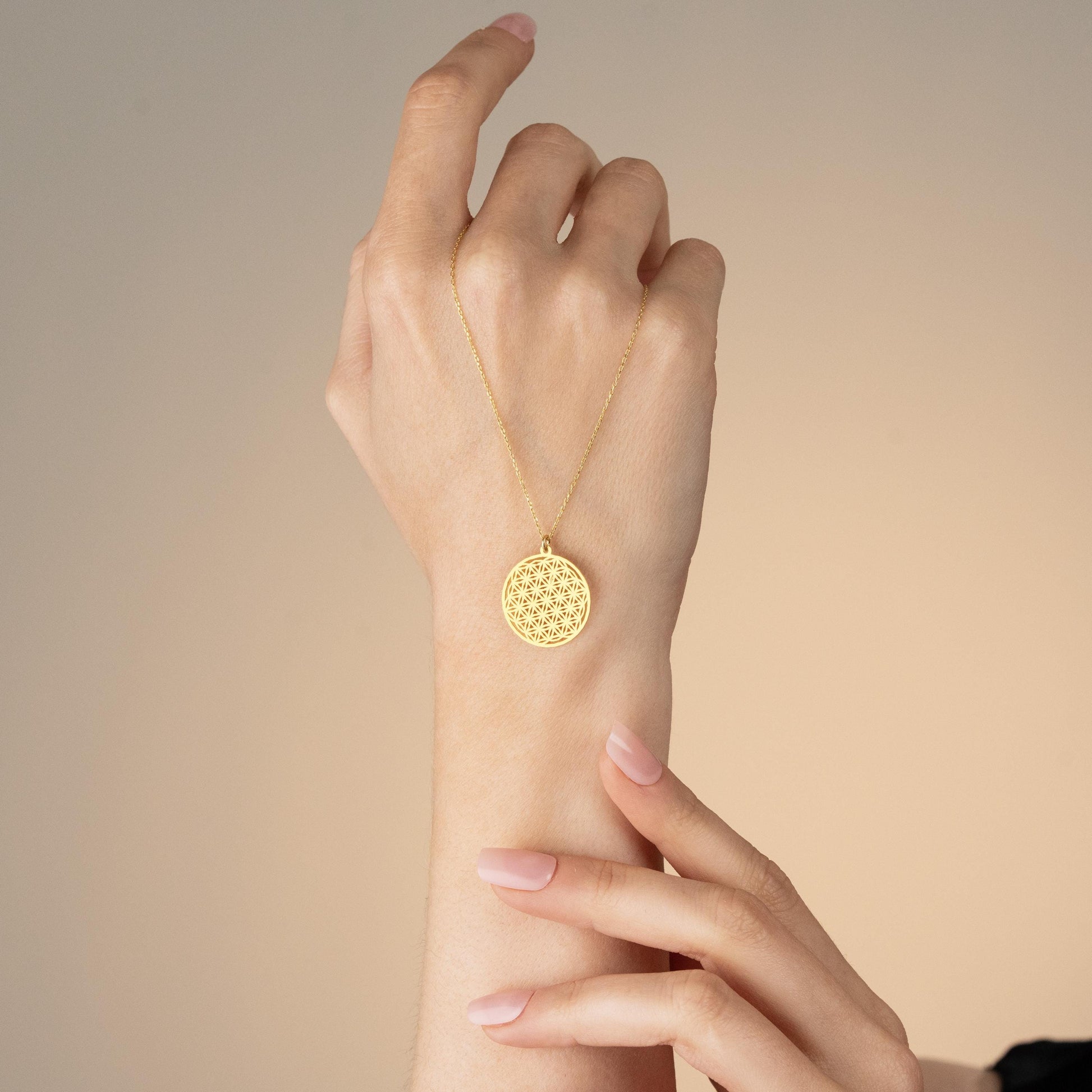 Gold Flower Of Life Medallion Necklace, Sacred Geometry Pendant