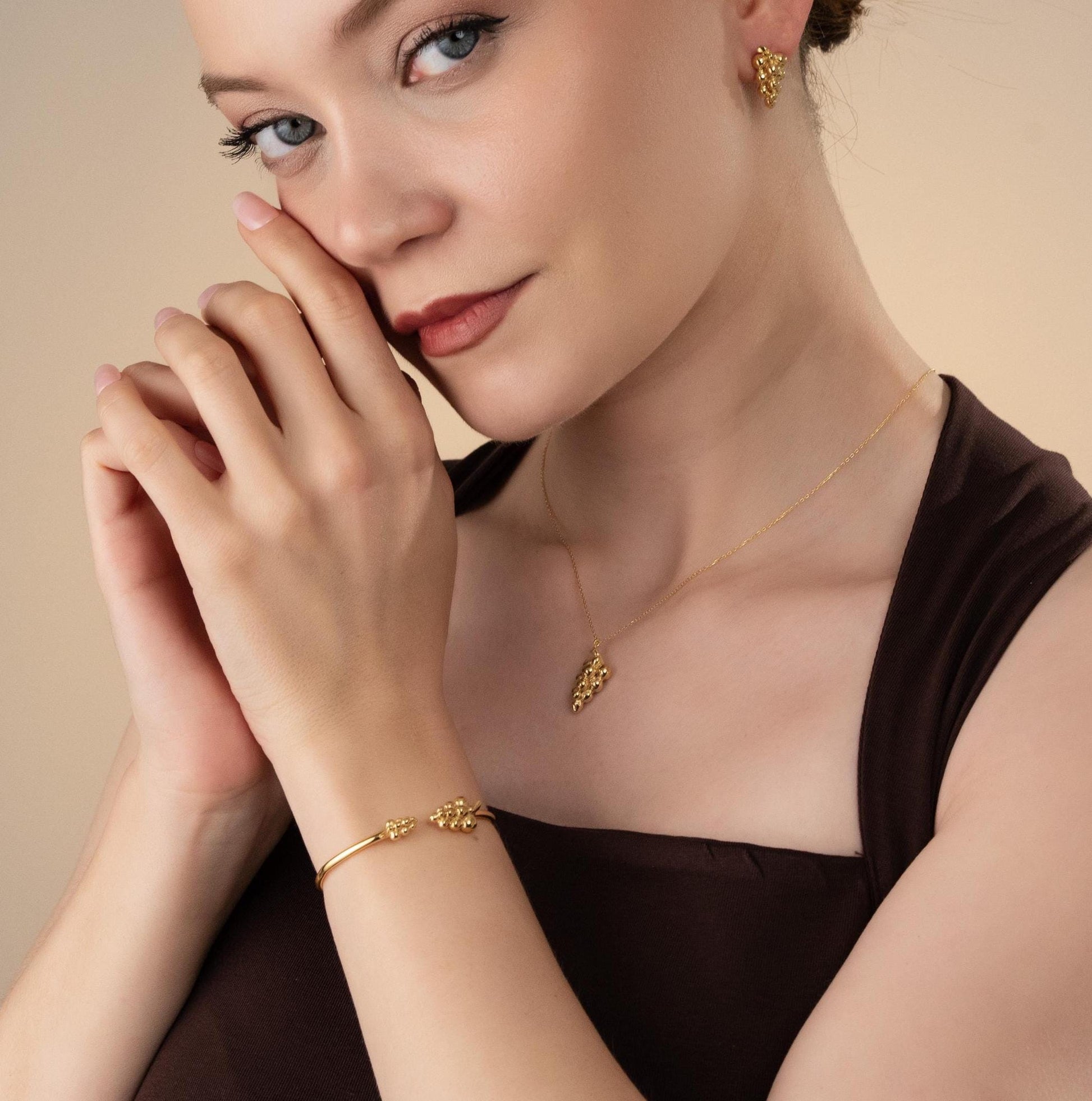 Gold & Silver Beaded Cuff Bracelet , Handmade Open Cuff Bracelet , Minimalist Open Bangle , Chunky Beaded Bracelet, Adjustable Modern Bangle