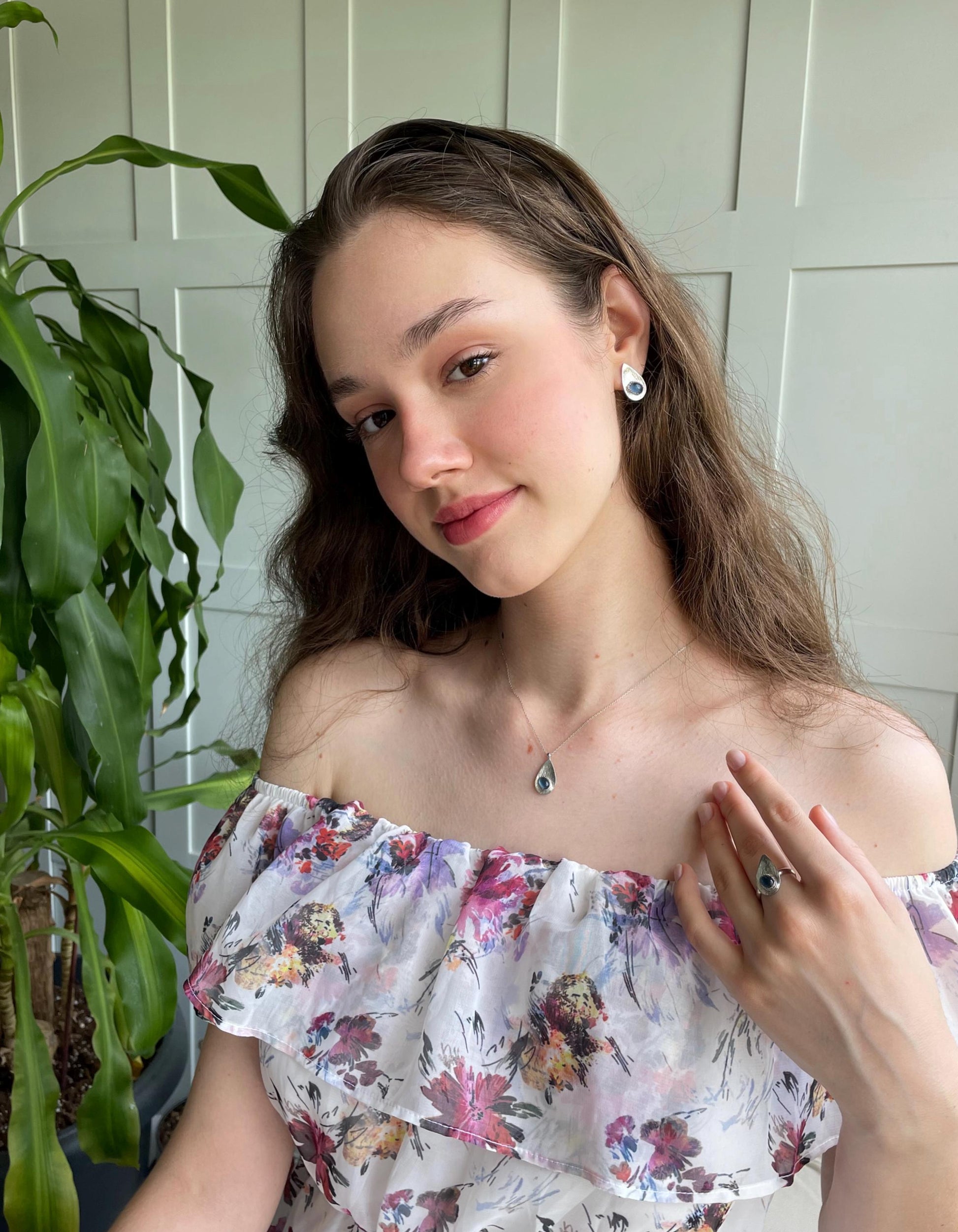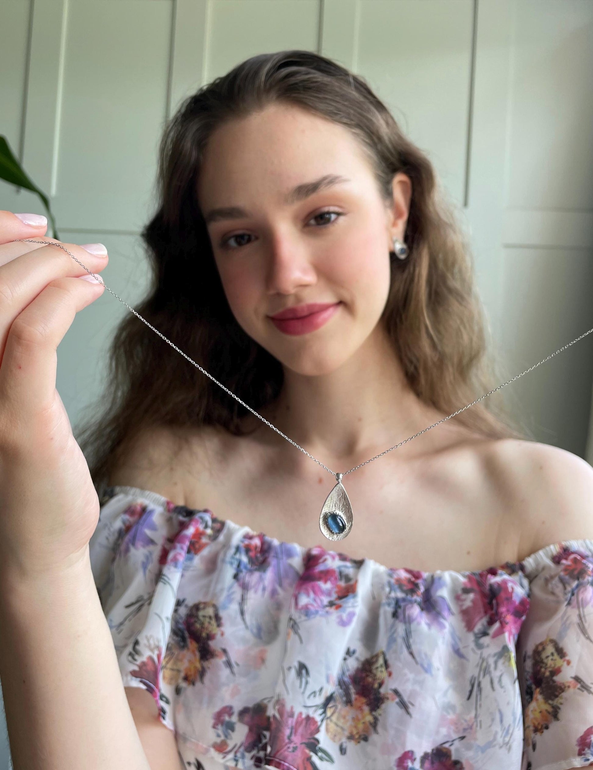 Handcrafted Silver Teardrop Birthstone Set - Necklace, Ring, Earrings - Large Teardrop Birthstone Trio Matching Set - Perfect Gift Idea
