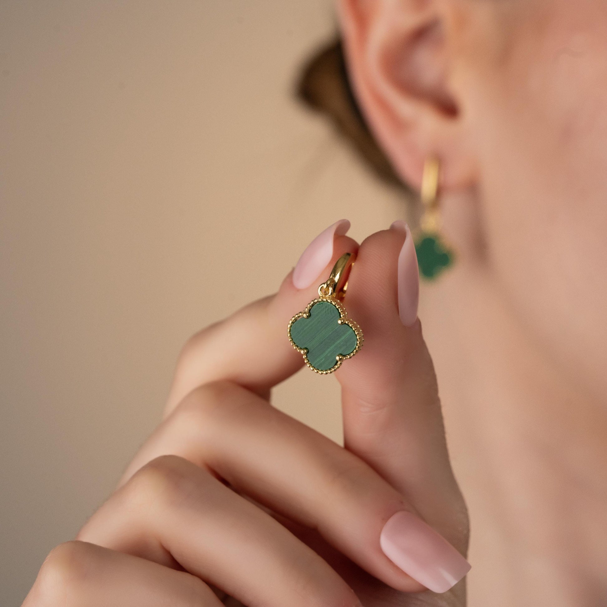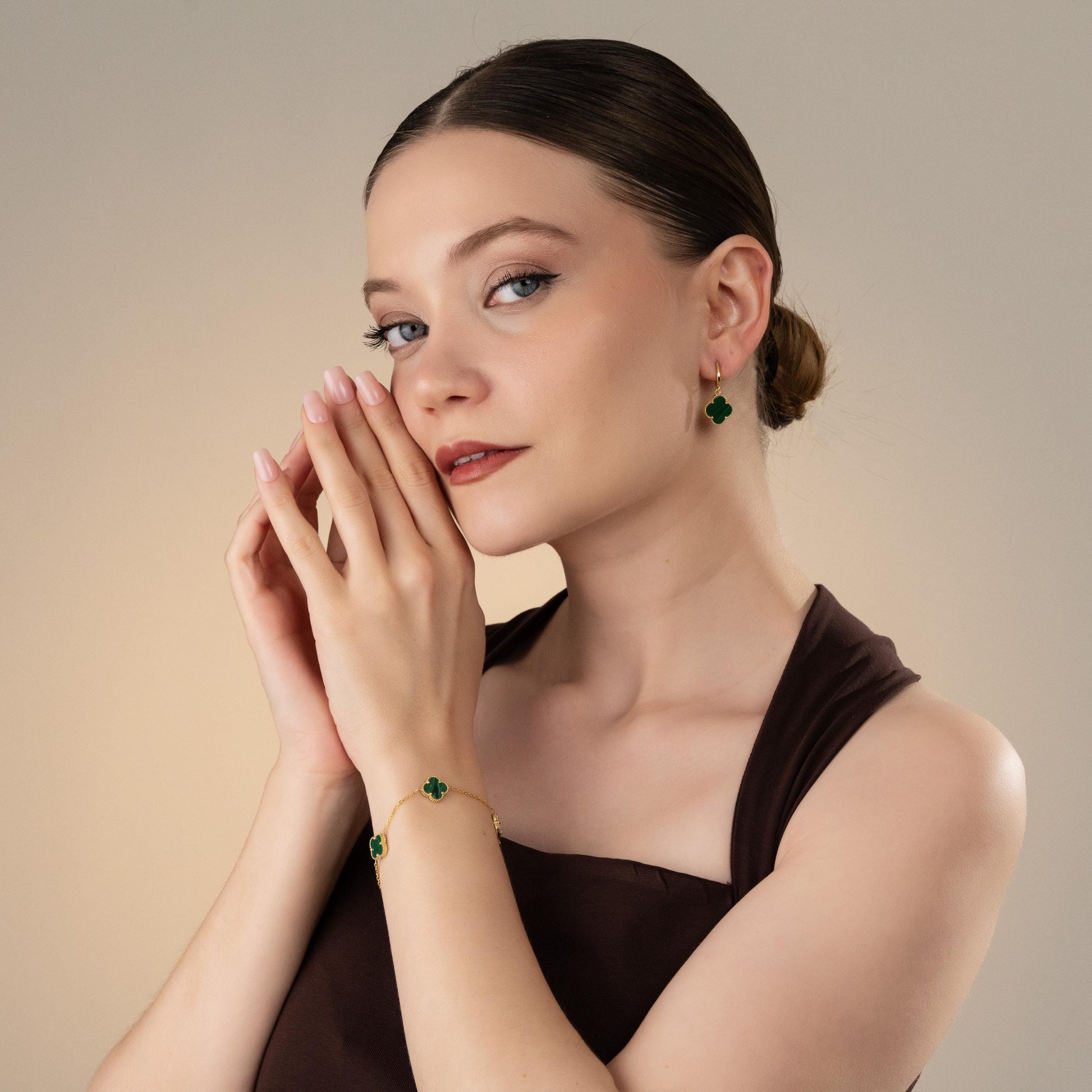 Lucky Clover Jewelry Set , Elegant Four Leaf Clover Bracelet & Earrings , Personalized Clover Jewelry Set , Gemstone Color And Chain Options