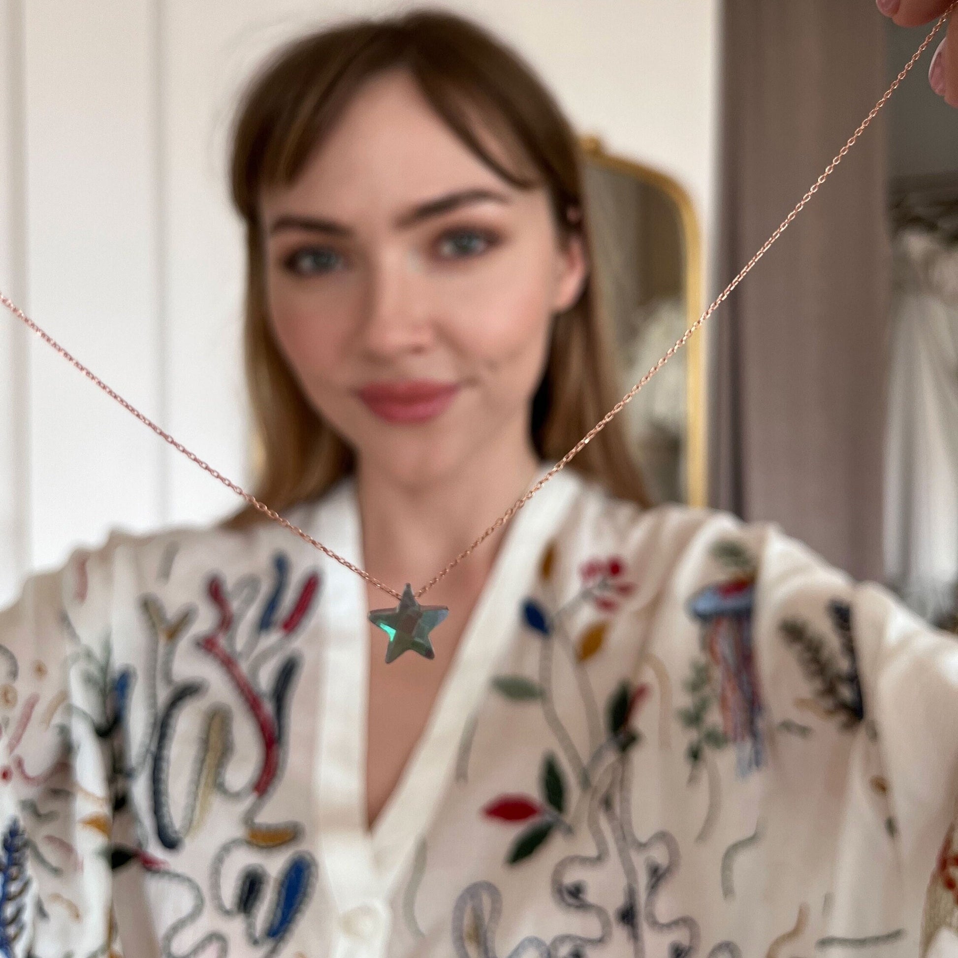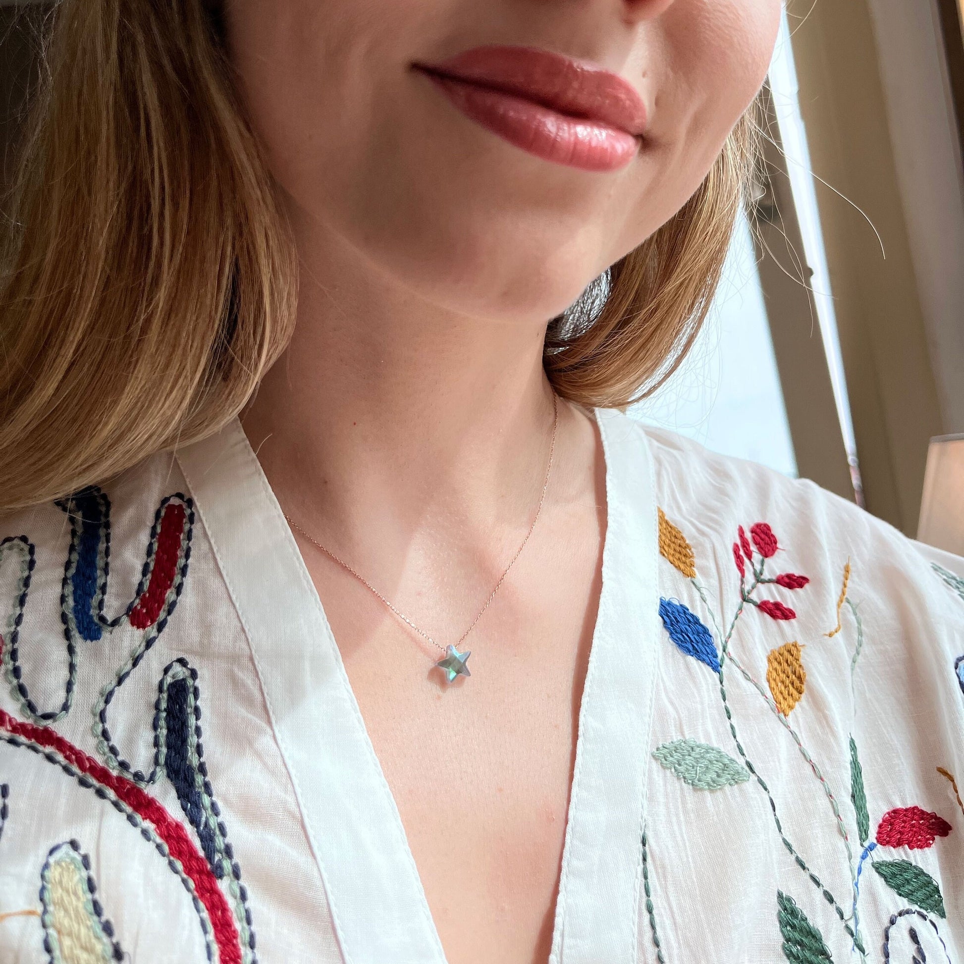 Minimalist Star Gemstone Sterling Silver Necklace - Labradorite Star Pendant - 925 Sterling Silver Necklace - Summer Star Necklace Gift