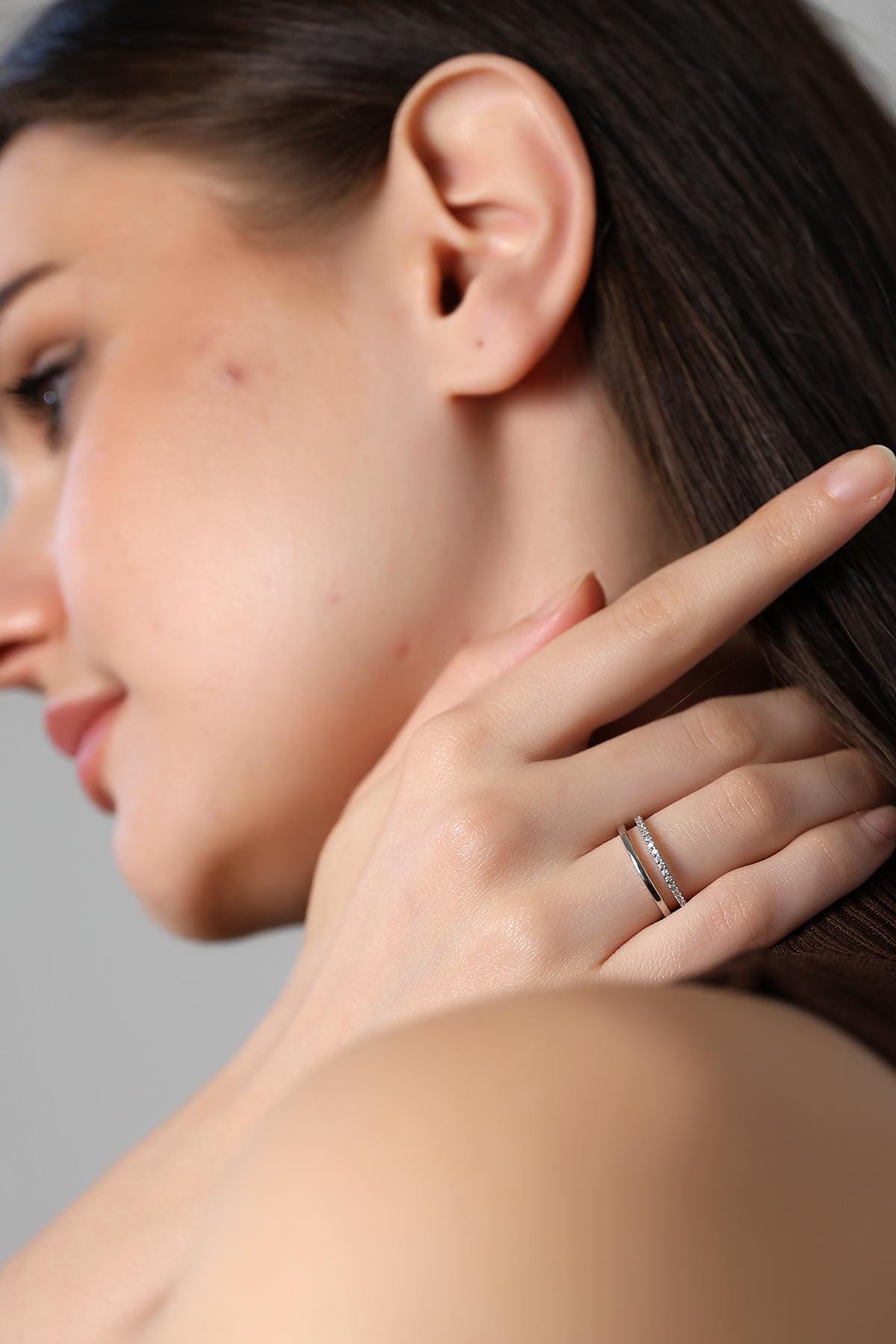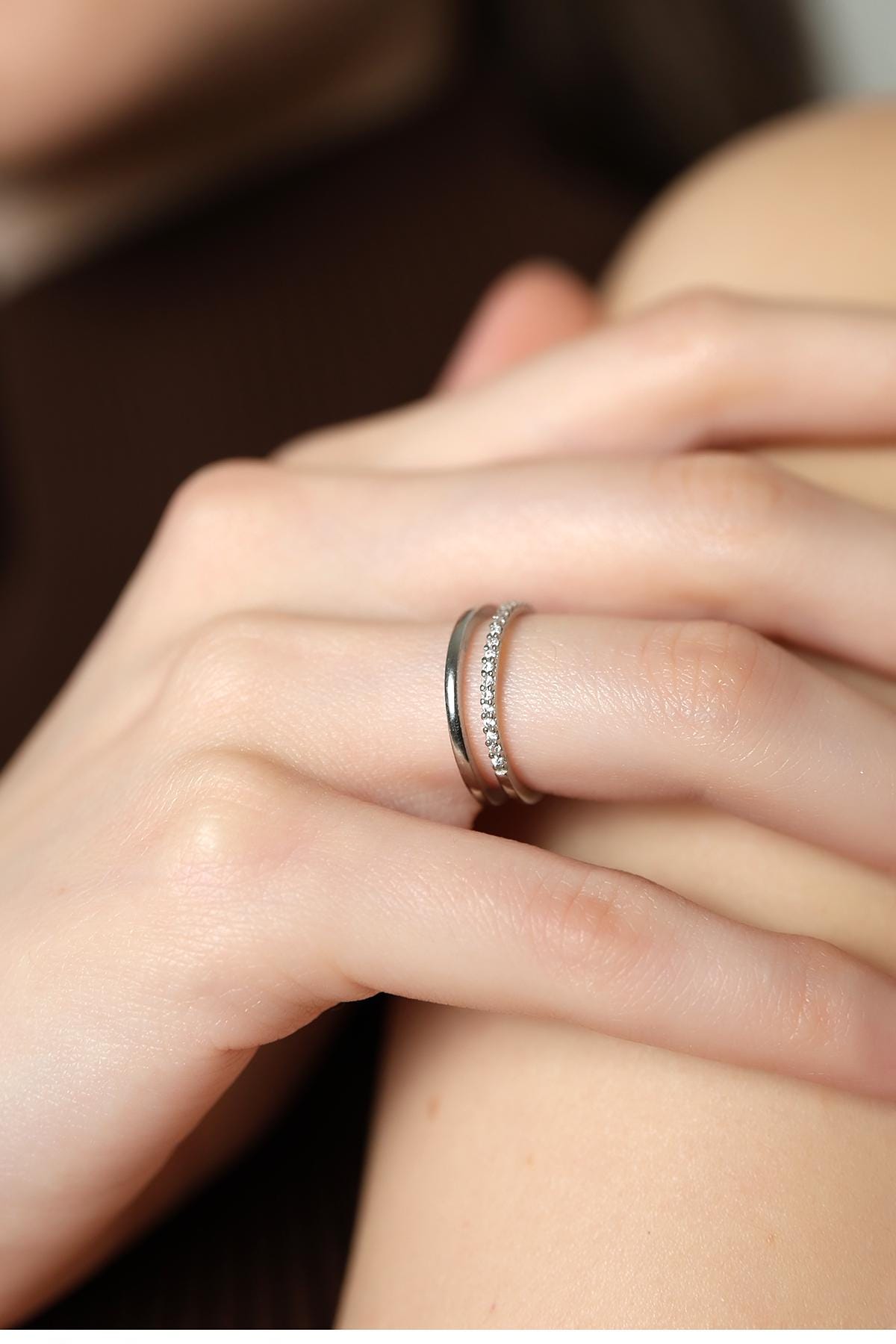 Modern Gold Dual Band Ring , Elegant Cz Double Band Ring , Chic & Classic Stacking Ring, Silver / Gold / Rose Gold Options , Women's Jewelry