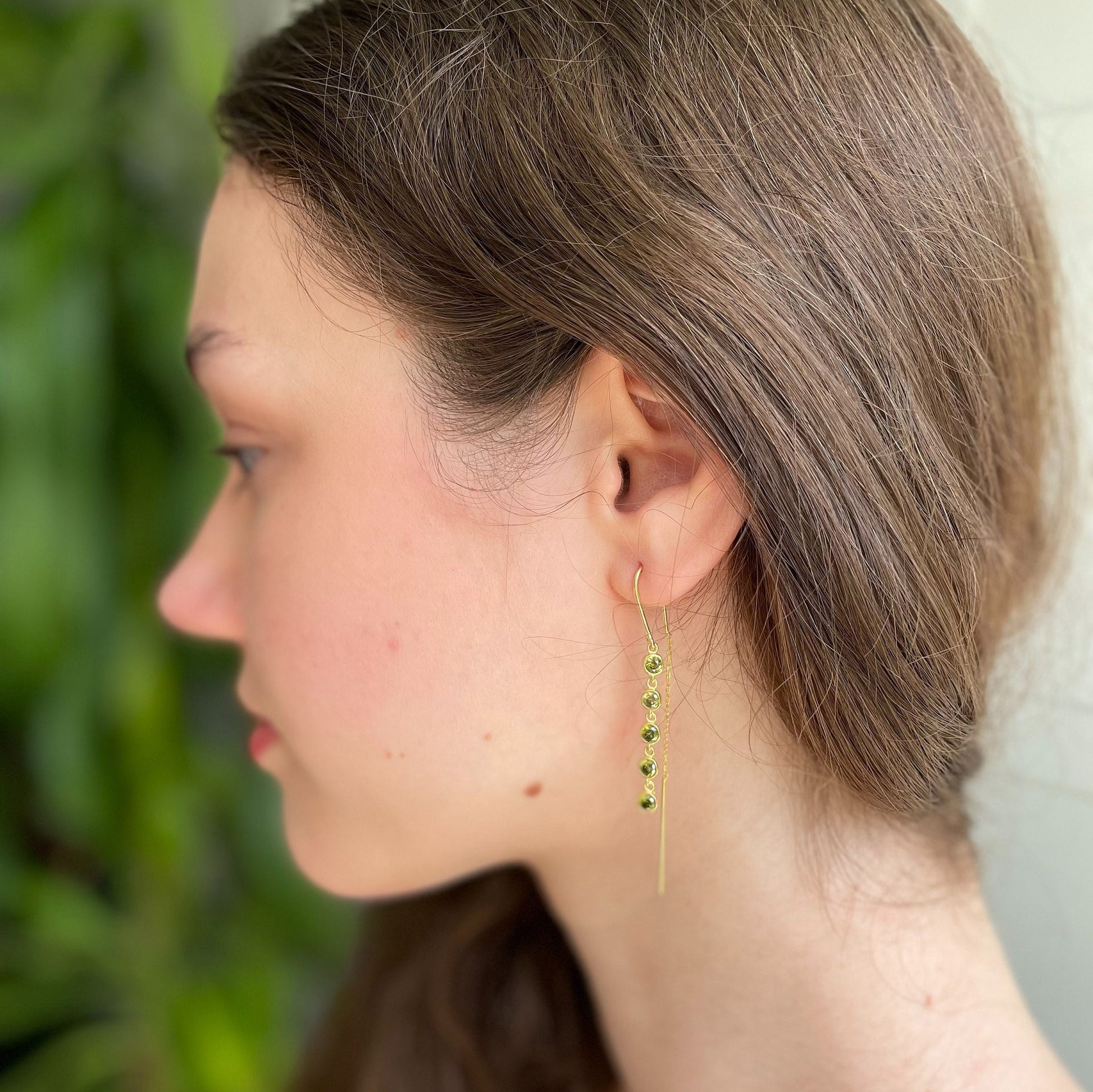 Olive Gemstone Long Dangle Earrings - Gold Plated Cz Dangle Earrings - Handmade Jewelry - Gold Plated & Silver Options