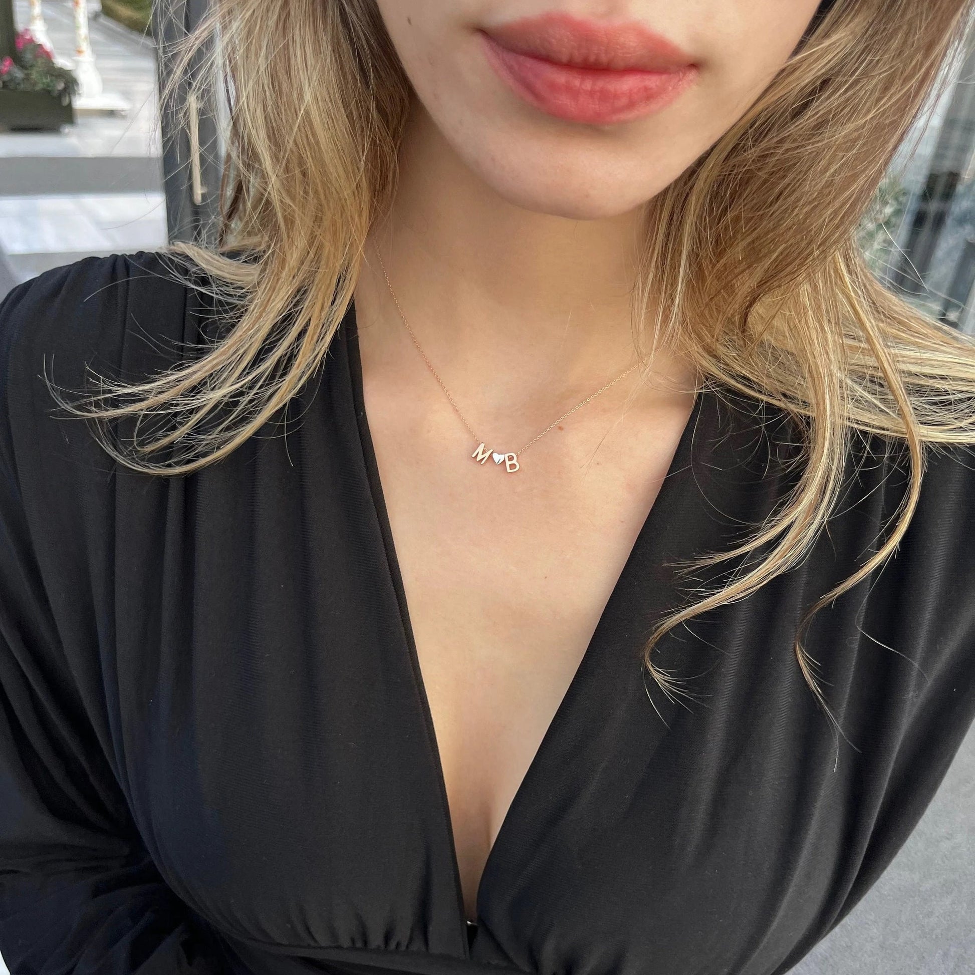Personalized Multinitial Necklace - Sterling Silver Customized Name Necklace - Dainty Initial & Heart Pendant - Handmade Personalized Gift