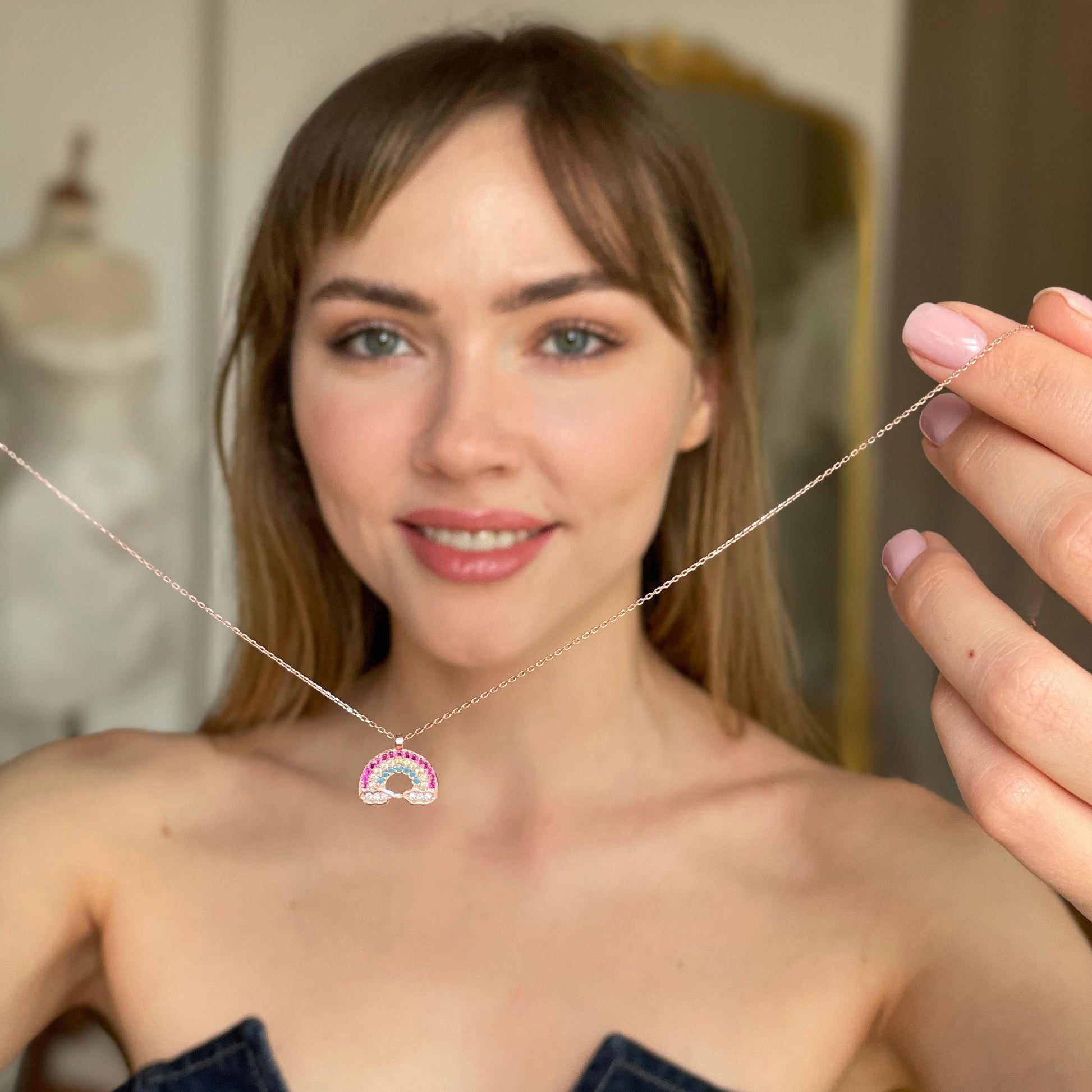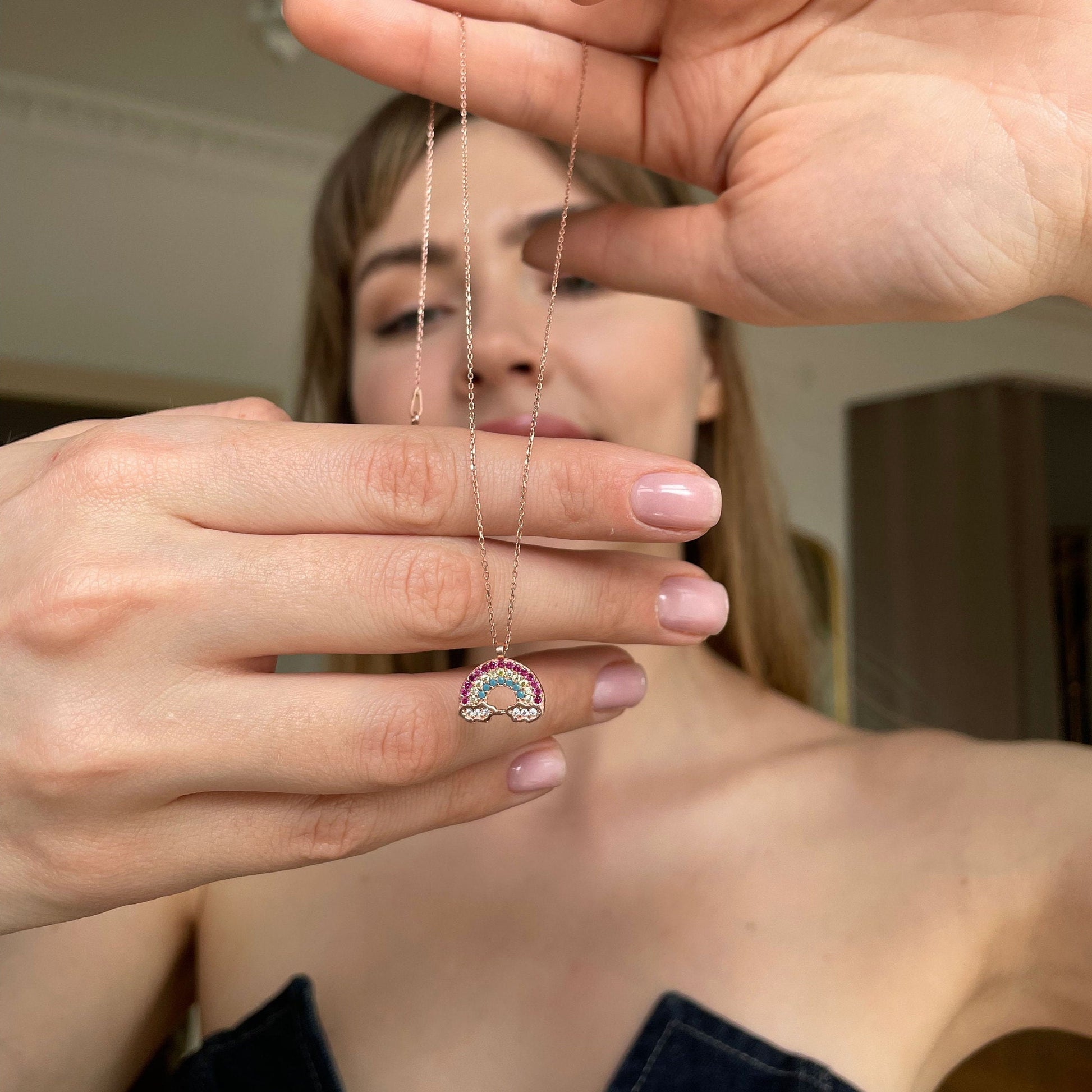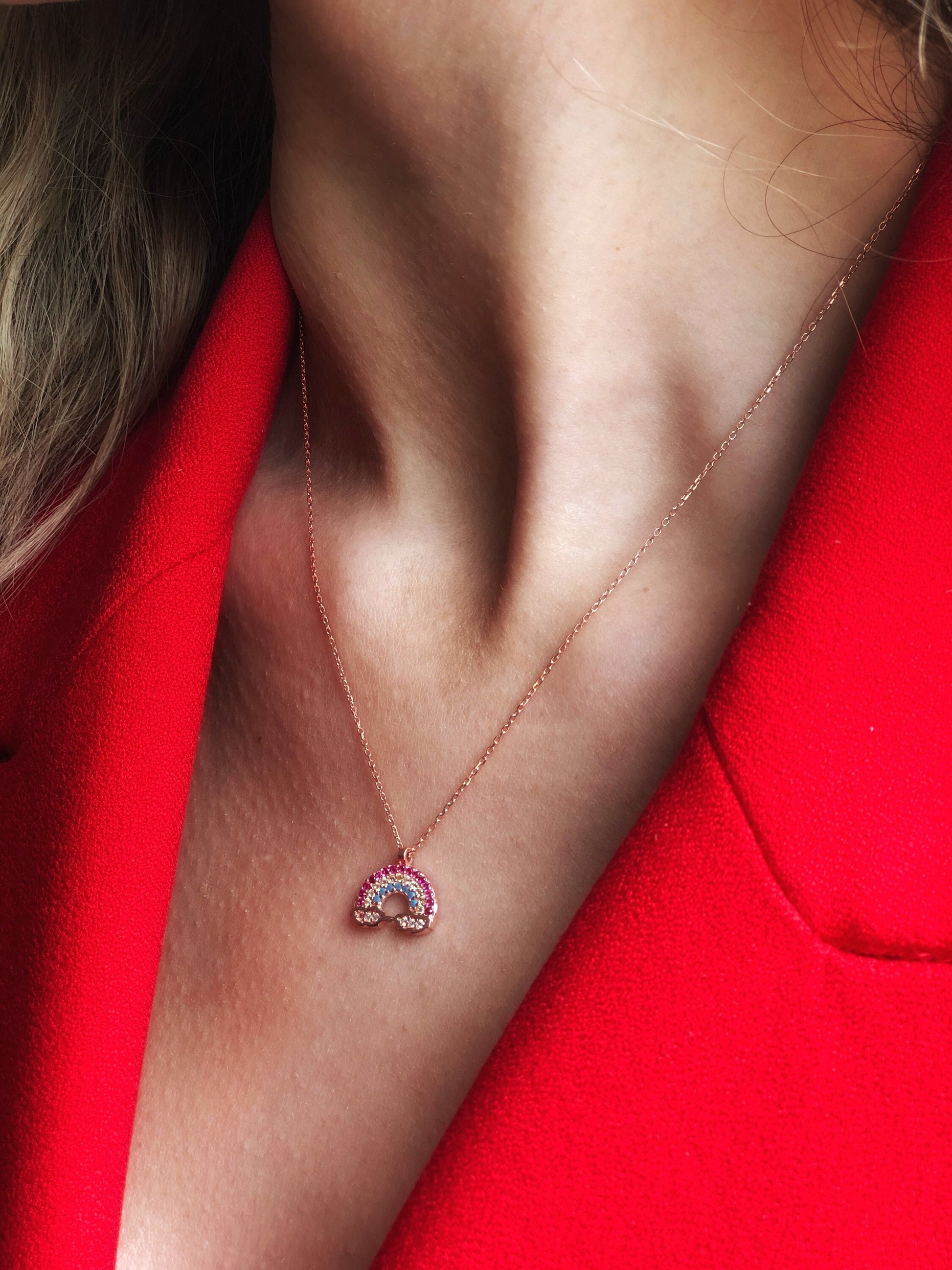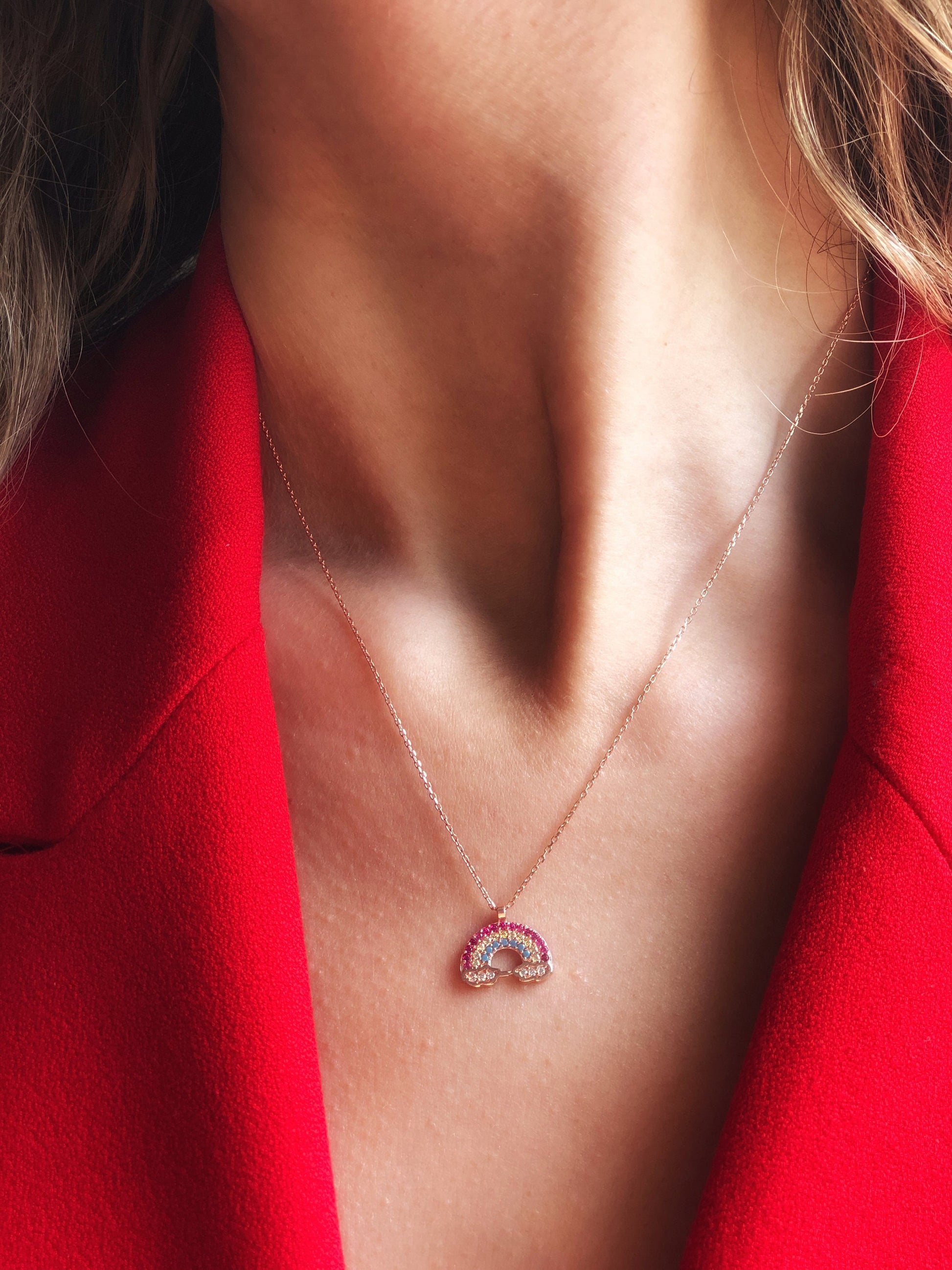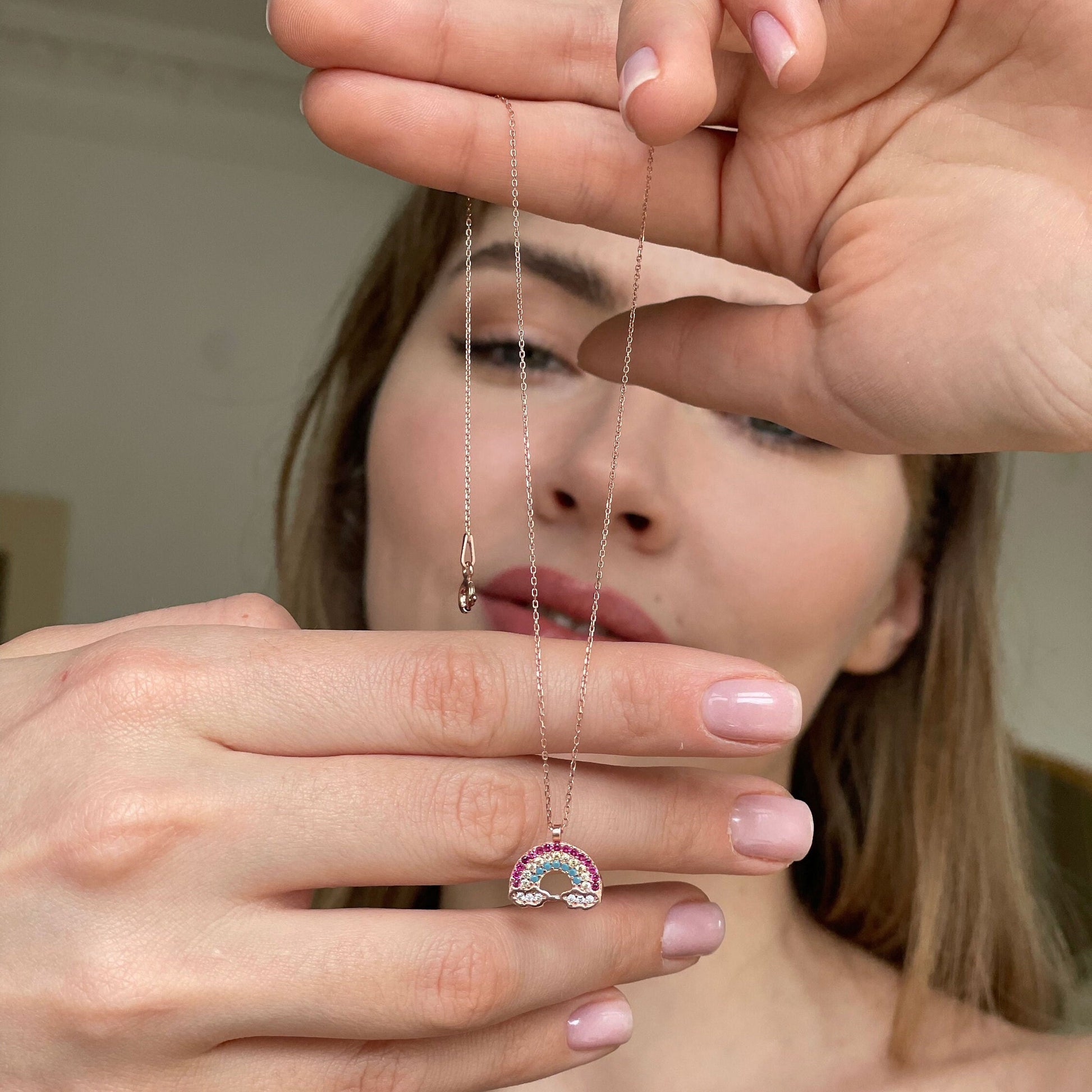 Rainbow Pendant Sterling Silver Necklace, Everyday Silver Necklace, Sterling Silver Jewelry, Summer Jewelry, Colorful Rainbow Cloud Necklace