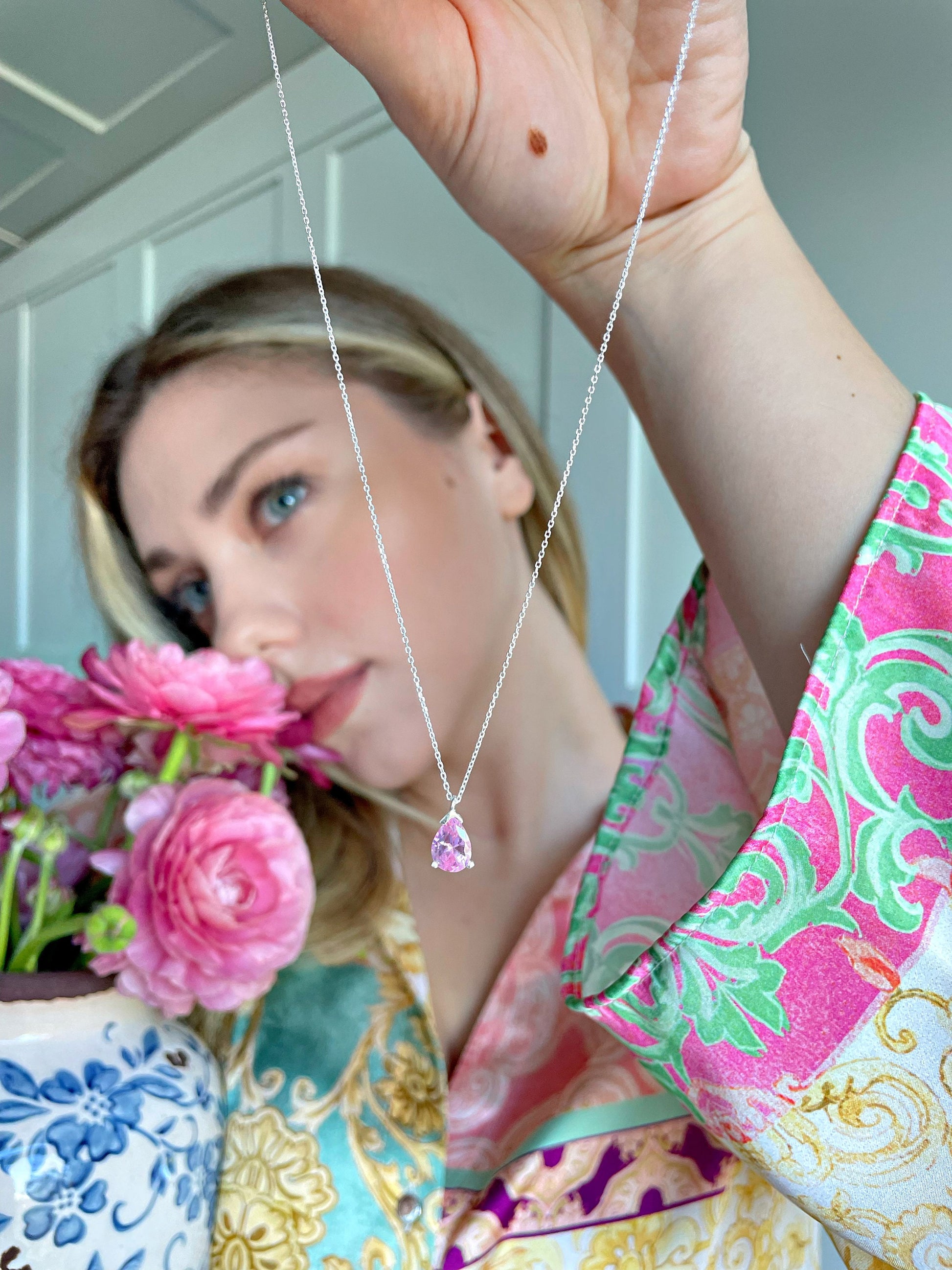 Rose Birthstone Jewelry, Hi Barbie Jewelry, Pink Inspo Birthstone Necklace For Girls, Summer Necklace, Silver/rose/gold Variations