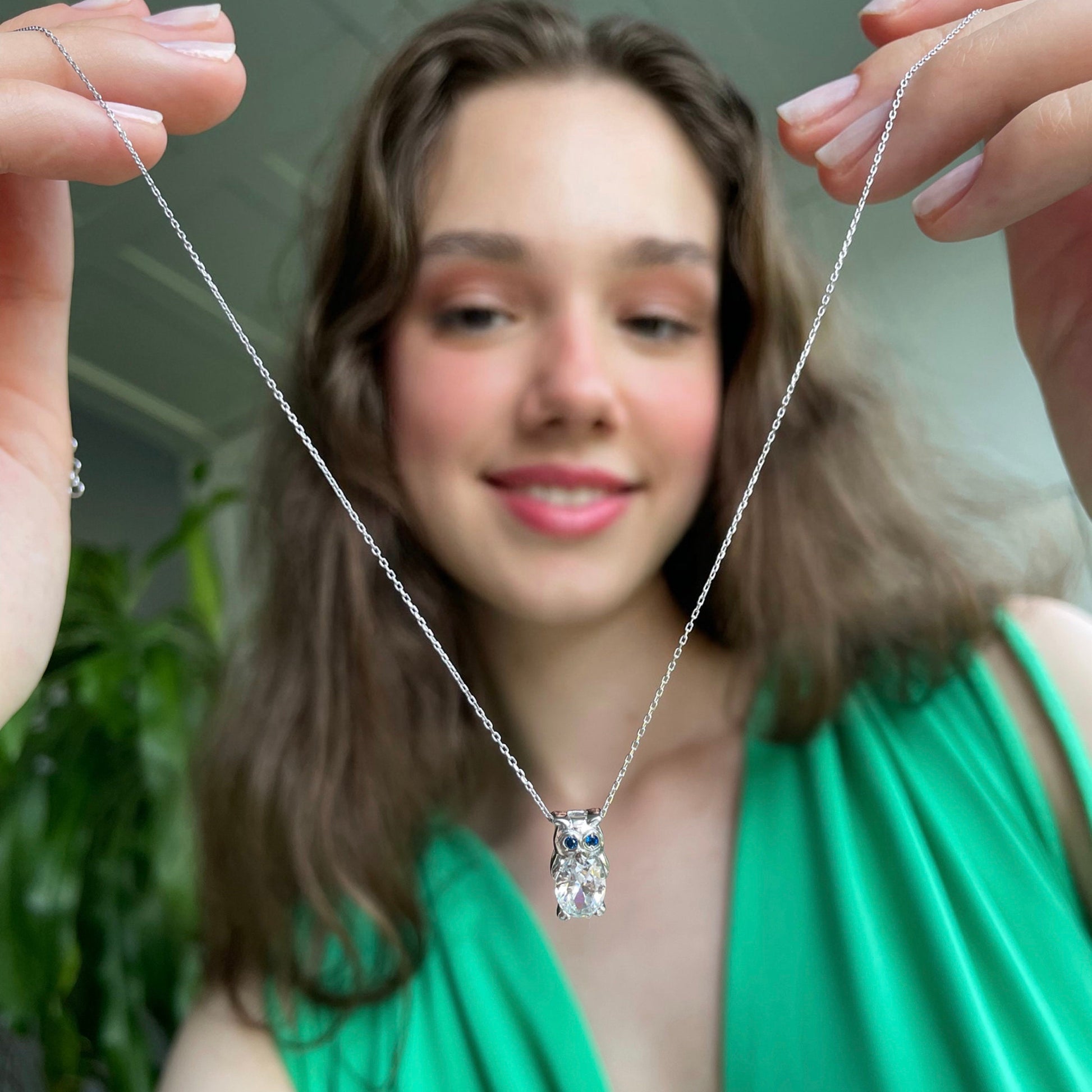 Sapphire Eyes Owl Necklace - Sterling Silver Owl Pendant - Handmade Jewelry For Women - Summer Accessories -