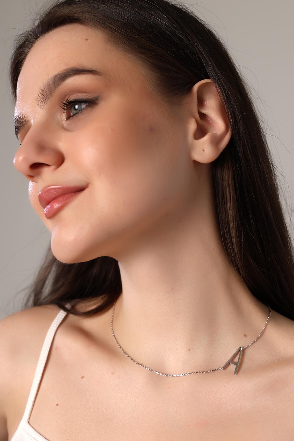 Sideways Initial Necklace, Custom Side Letter Necklace, Personalized Alphabet Pendant, Asymmetrical Initial Necklace, Chic Personalized Gift