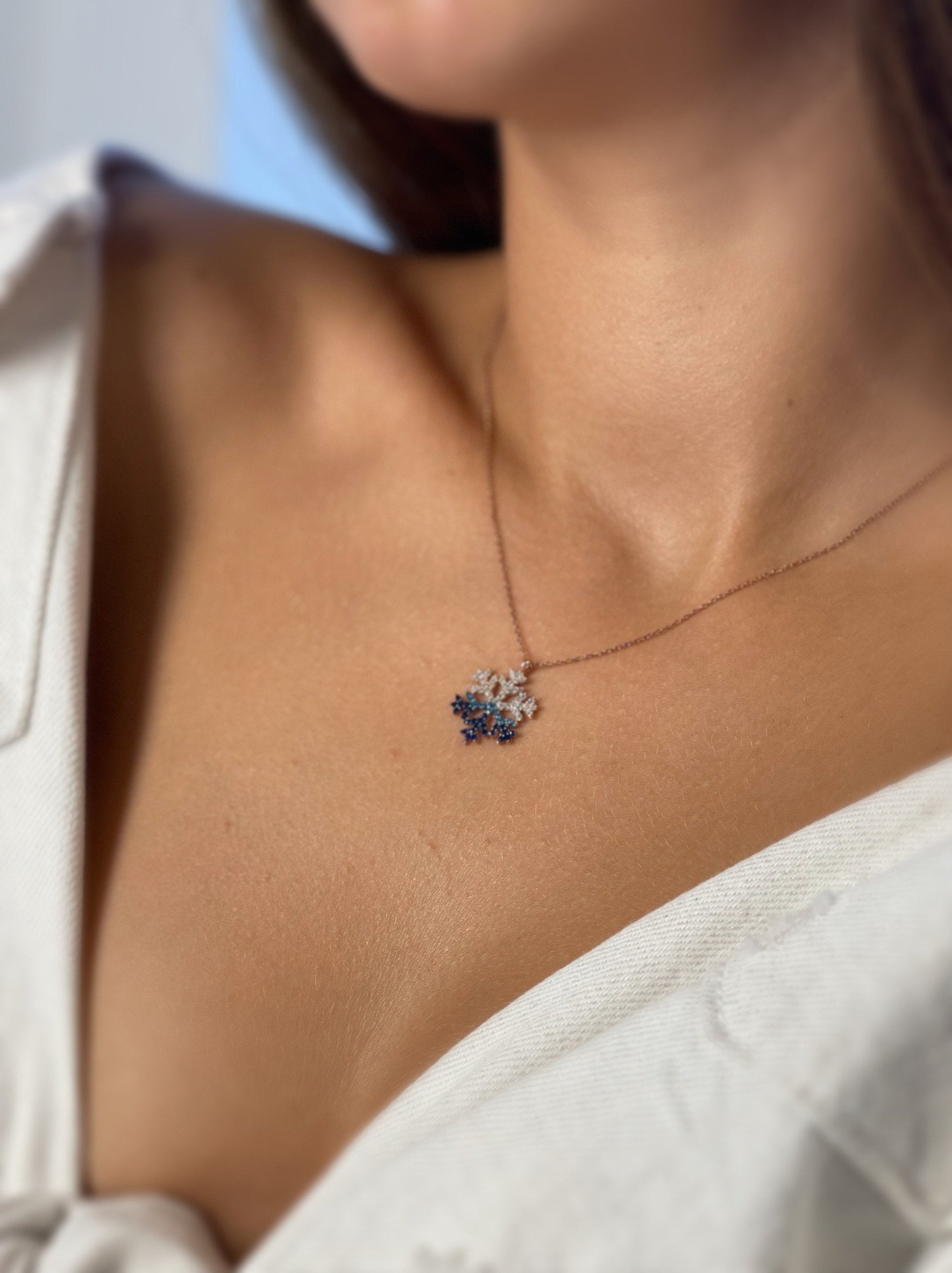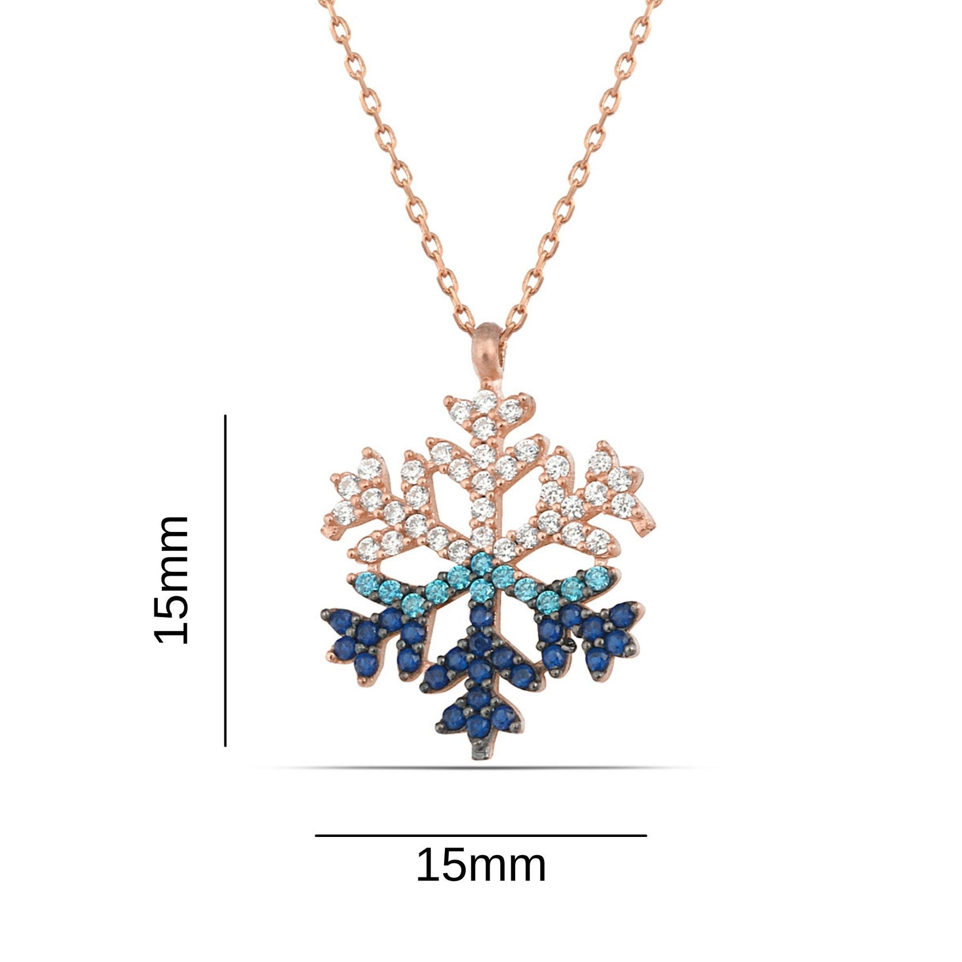 Silver Snow Flake Necklace, Modern Look Multicolor Cubic Zircon Pendant , Winter Present, Snow Flake Handmade Jewelry,