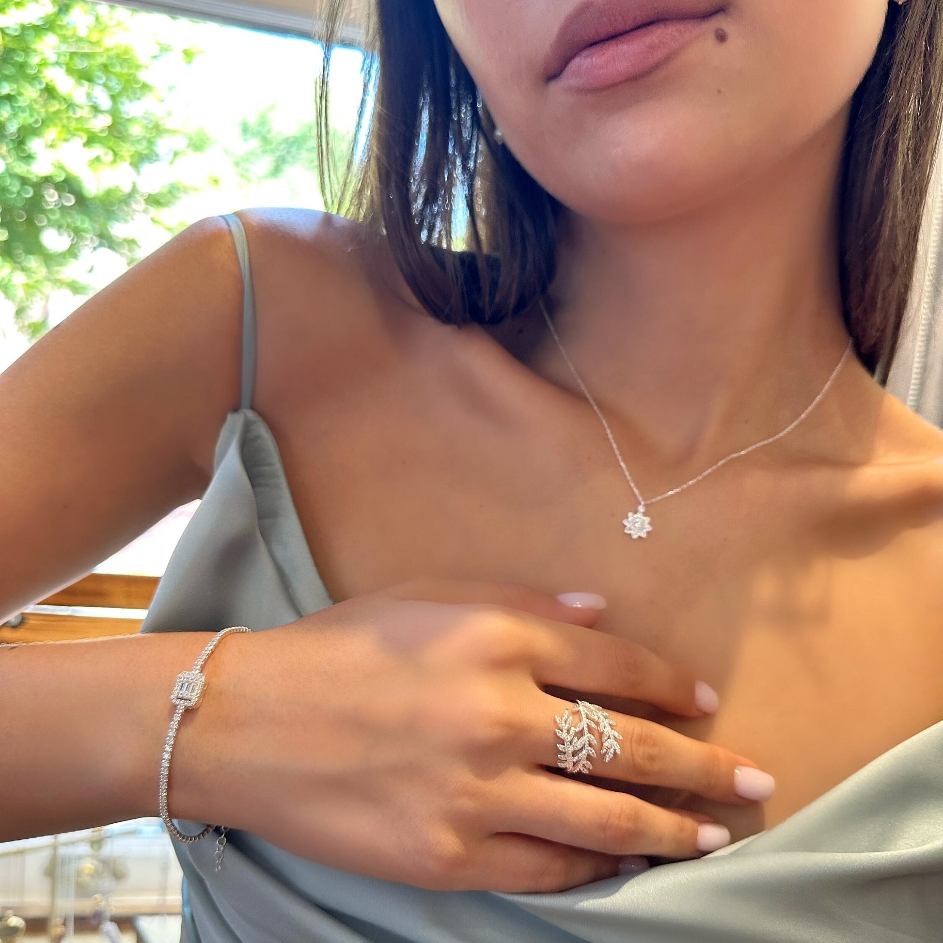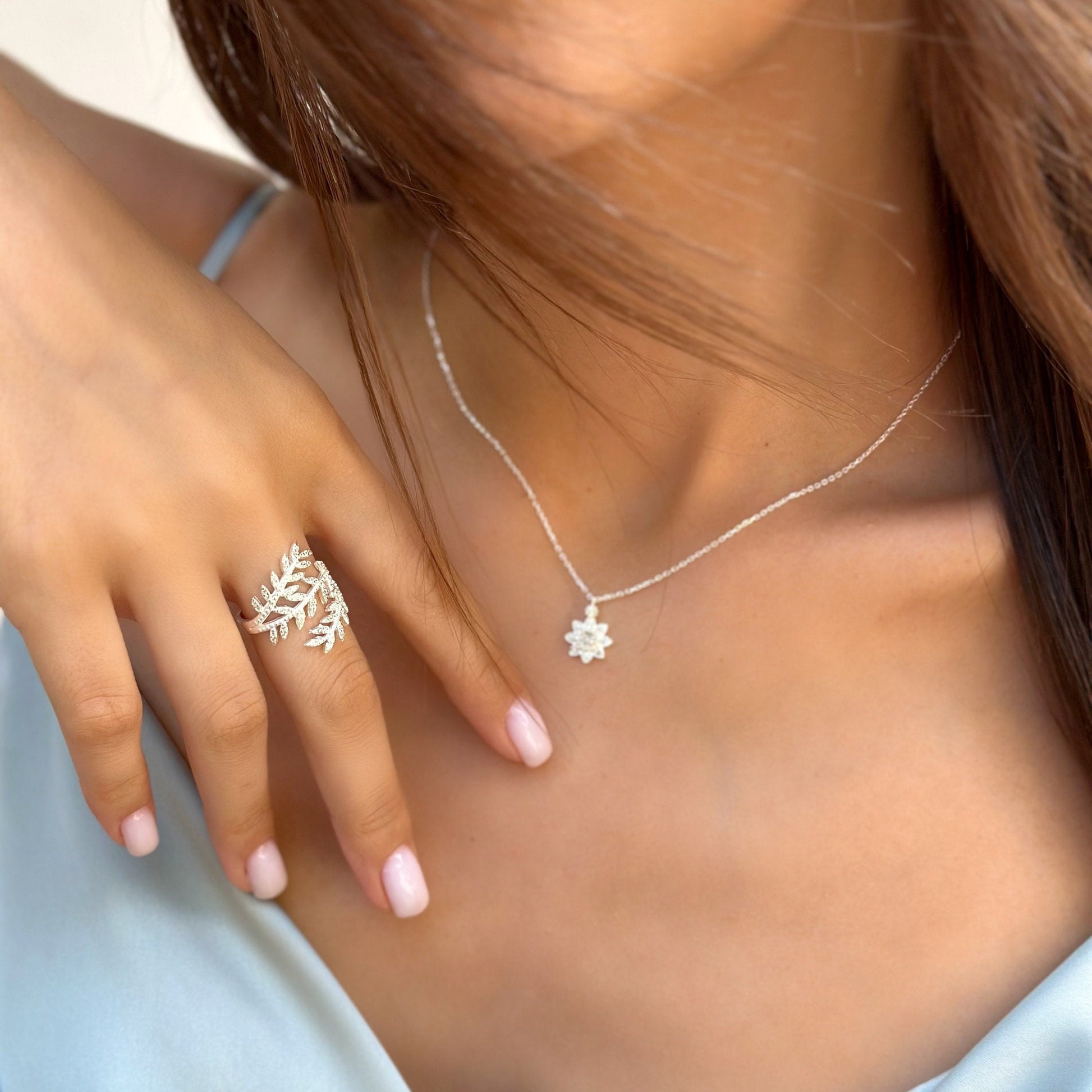 Sparkling Olive Branch Ring - Cz Olive Leaf Adjustable Ring - Cubic Zirconia Wrap Ring -925 Sterling Silver Jewelry For Women - Summer Jewls