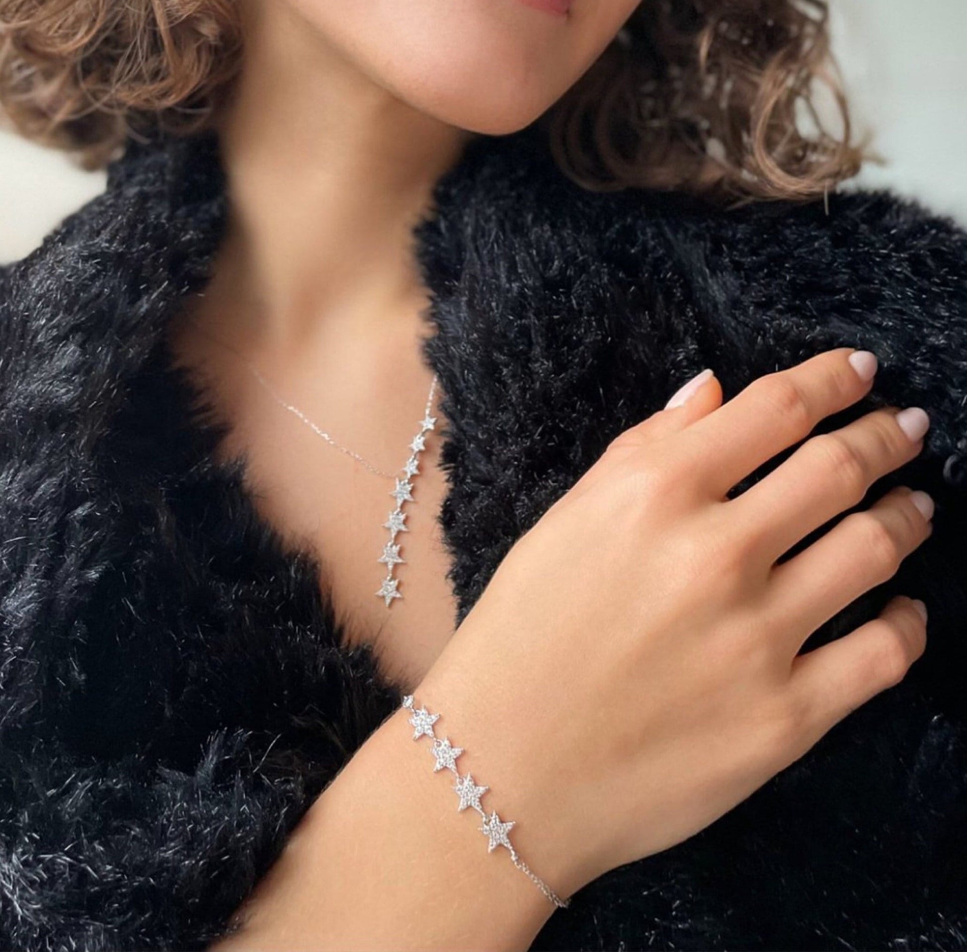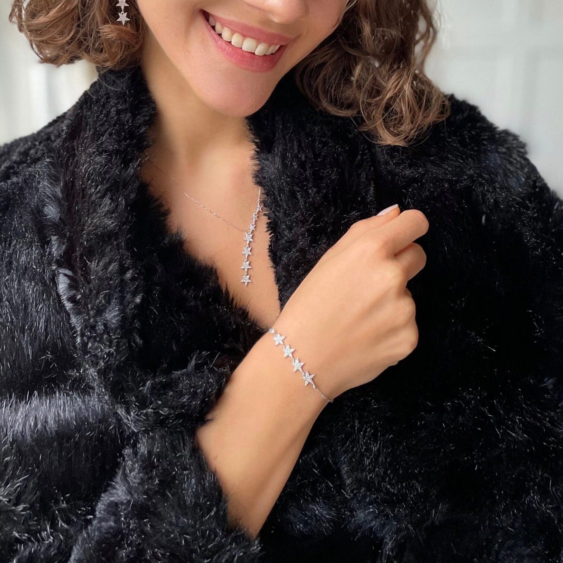 Star Lariat Jewelry Set - Silver / Gold / Rose Gold Star Lariat Necklace & Bracelet Set - Sterling Silver Jewelry -