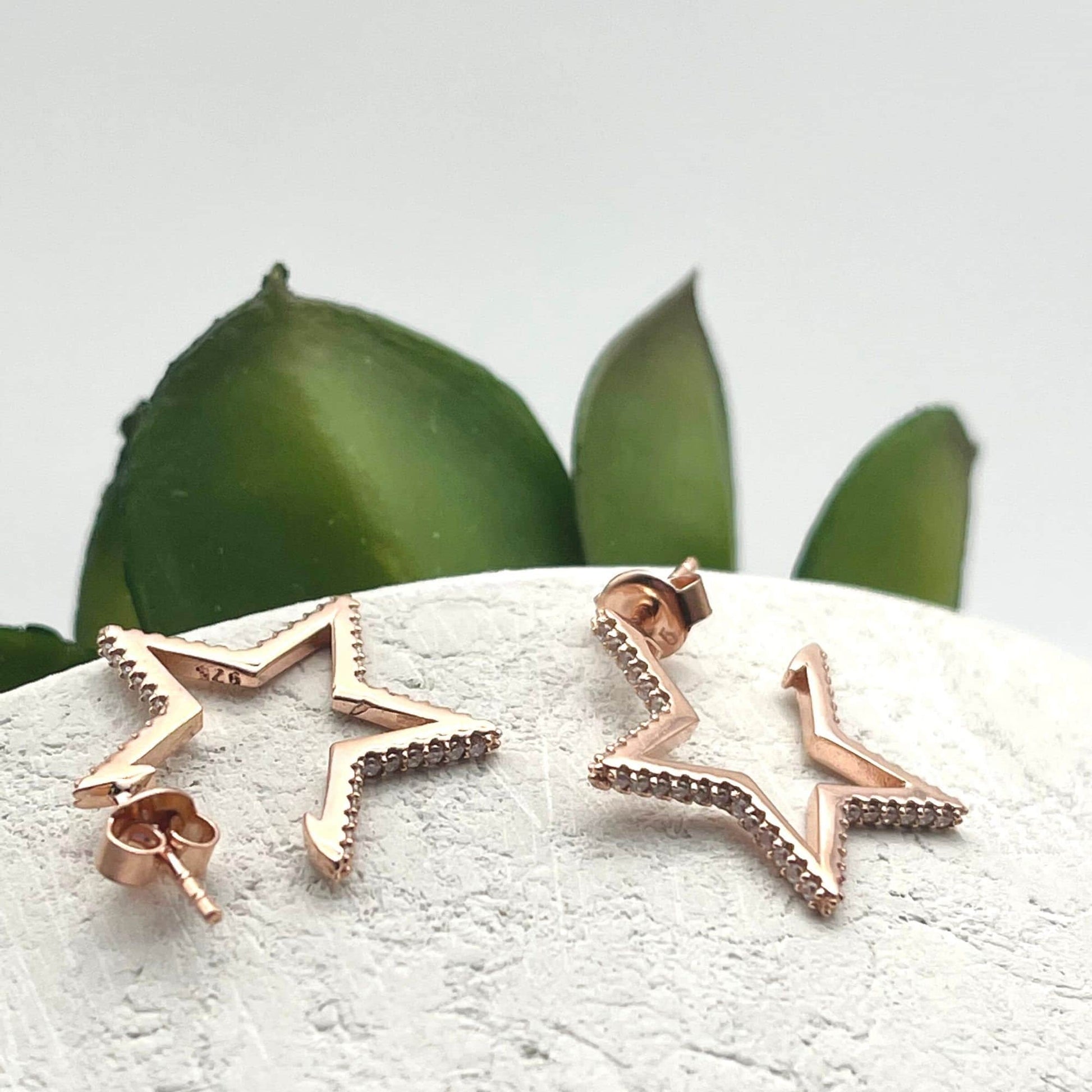 Star Shape Stud Earrings - Dazzling Star Earrings - Minimalist Rose Gold Color Star Earrings - Sterling Silver Jewelry