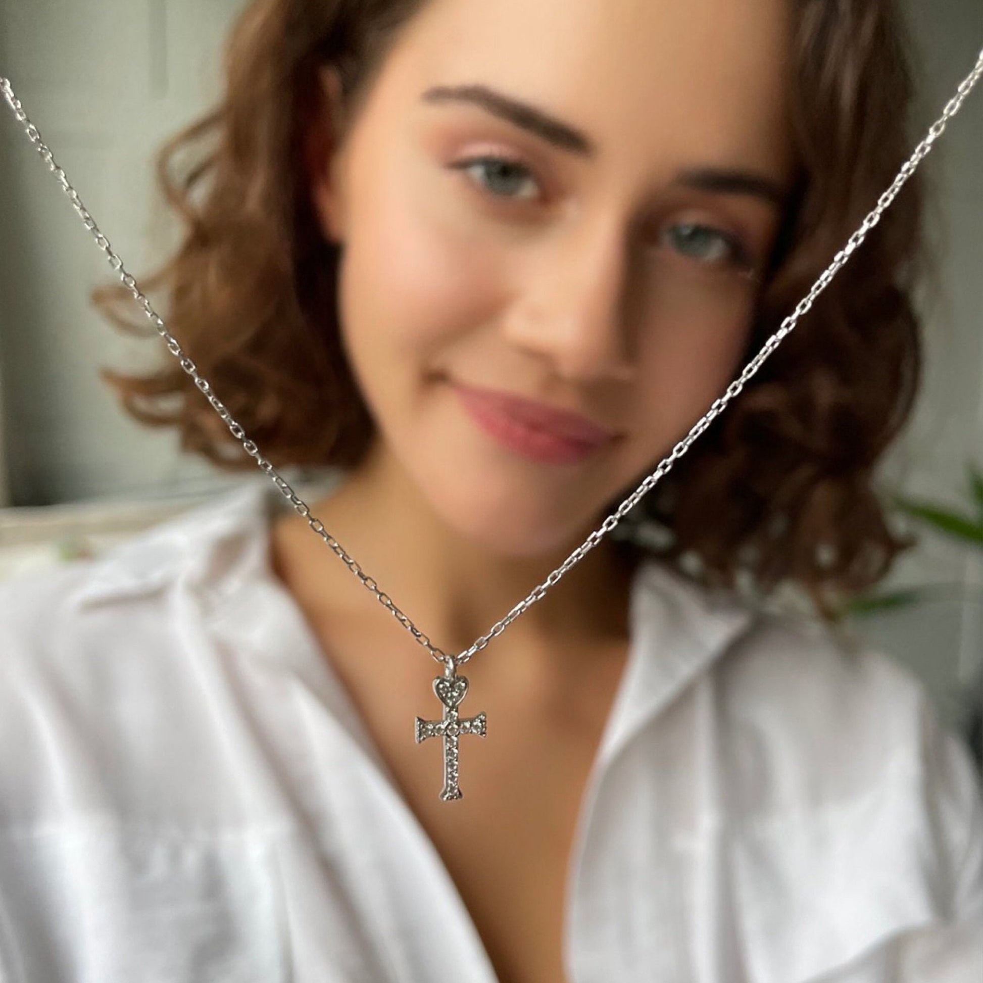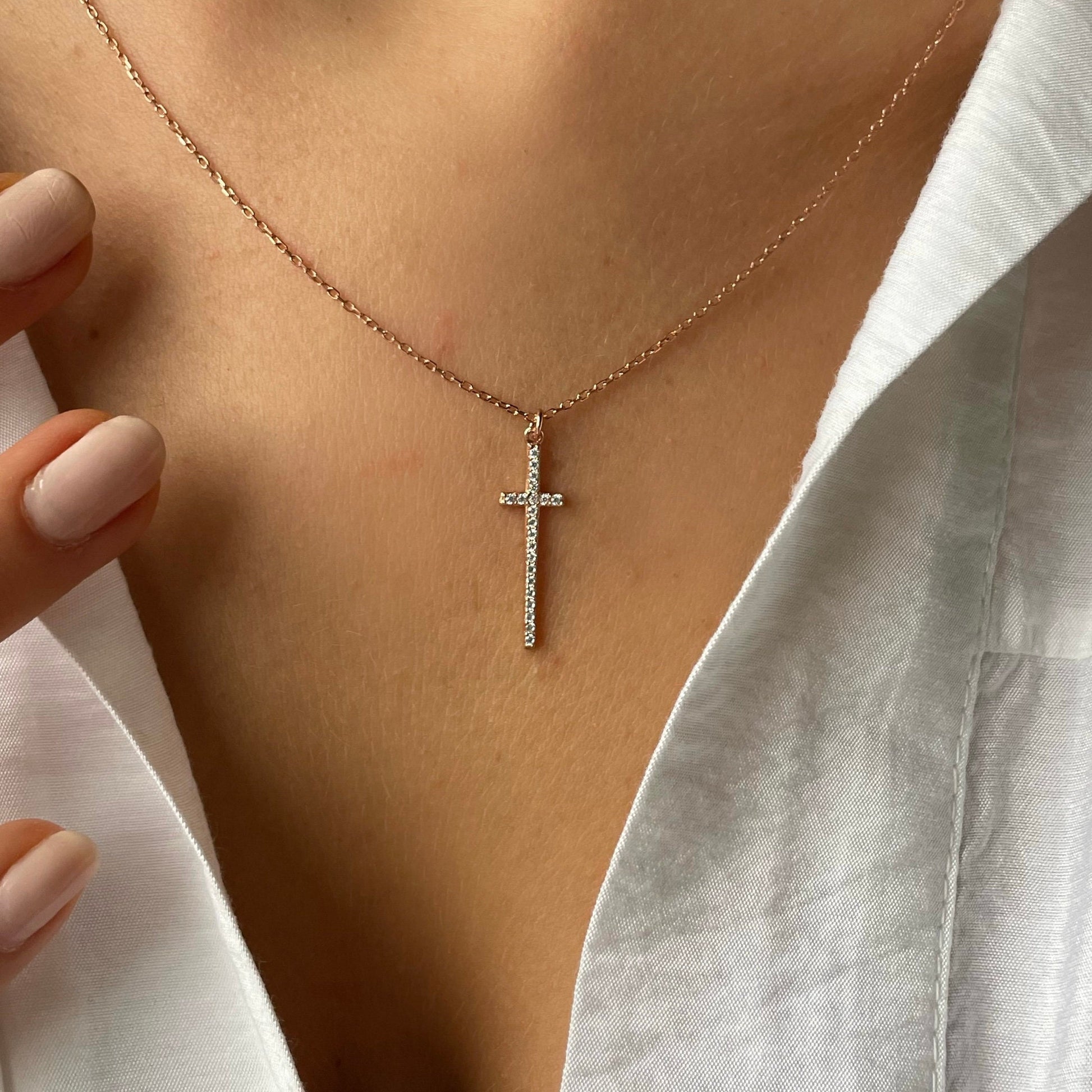 Sterling Silver Cross Necklace - Tiny Cross Pendant, Dainty Christian Jewelry, Religious Gift, Gold / Silver / Rose Gold Minimalist Necklace