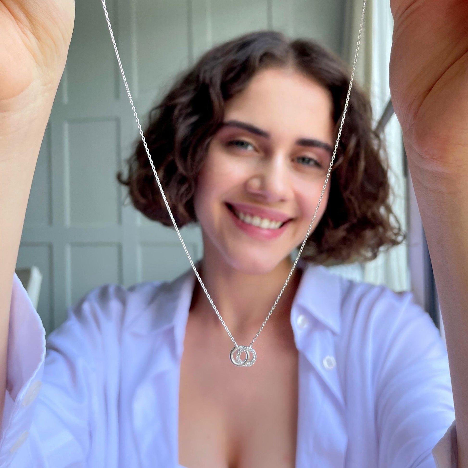 Sterling Silver Double Ring Necklace -togetherness Eternal Ring Necklace - Cz Double Circle Linked Necklace -