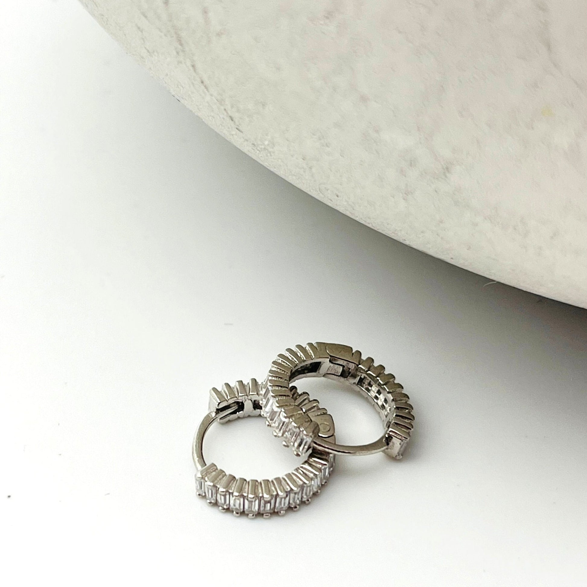 Tiny Baguette Hoop Earrings - Silver/gold Baguette Earrings - Baguette Huggies - Tiny Huggies - Pave Earrings - Minimalist Hoops