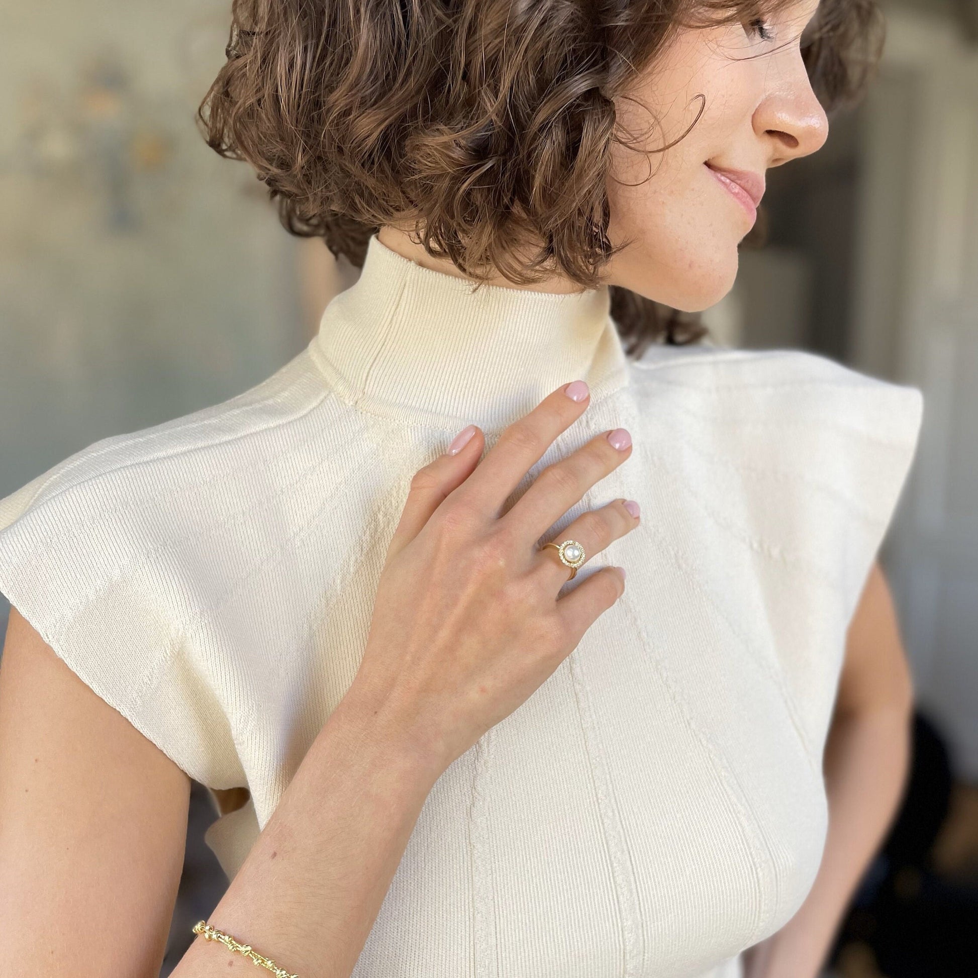 Vintage Zirconia Frame Pearl Ring - Round Pearl Ring With Zirconia Frame - Minimalist Silver/ Gold / Rose Gold Pearl Ring -