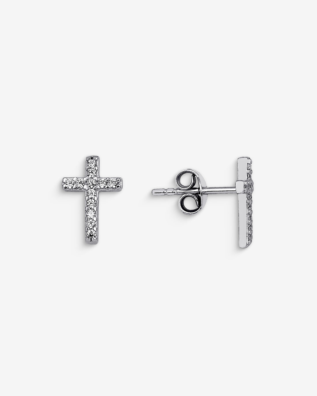 CZ CROSS STUD EARRINGS These minimalist cross stud earrings are crafted from sterling silver and...