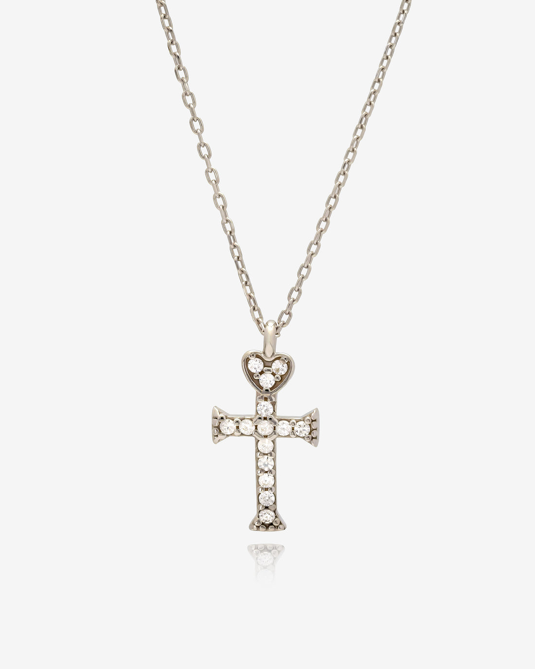 Dainty Heart Cross CZ Necklace - Sterling Silver