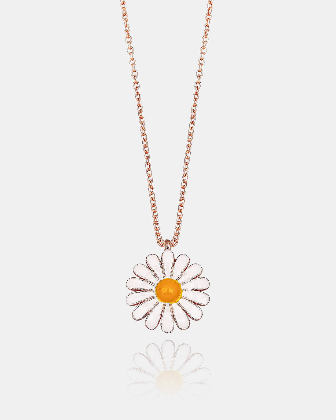 DAISY FLOWER NECKLACE This rose gold plated sterling silver necklace features a delicate daisy pendant,...