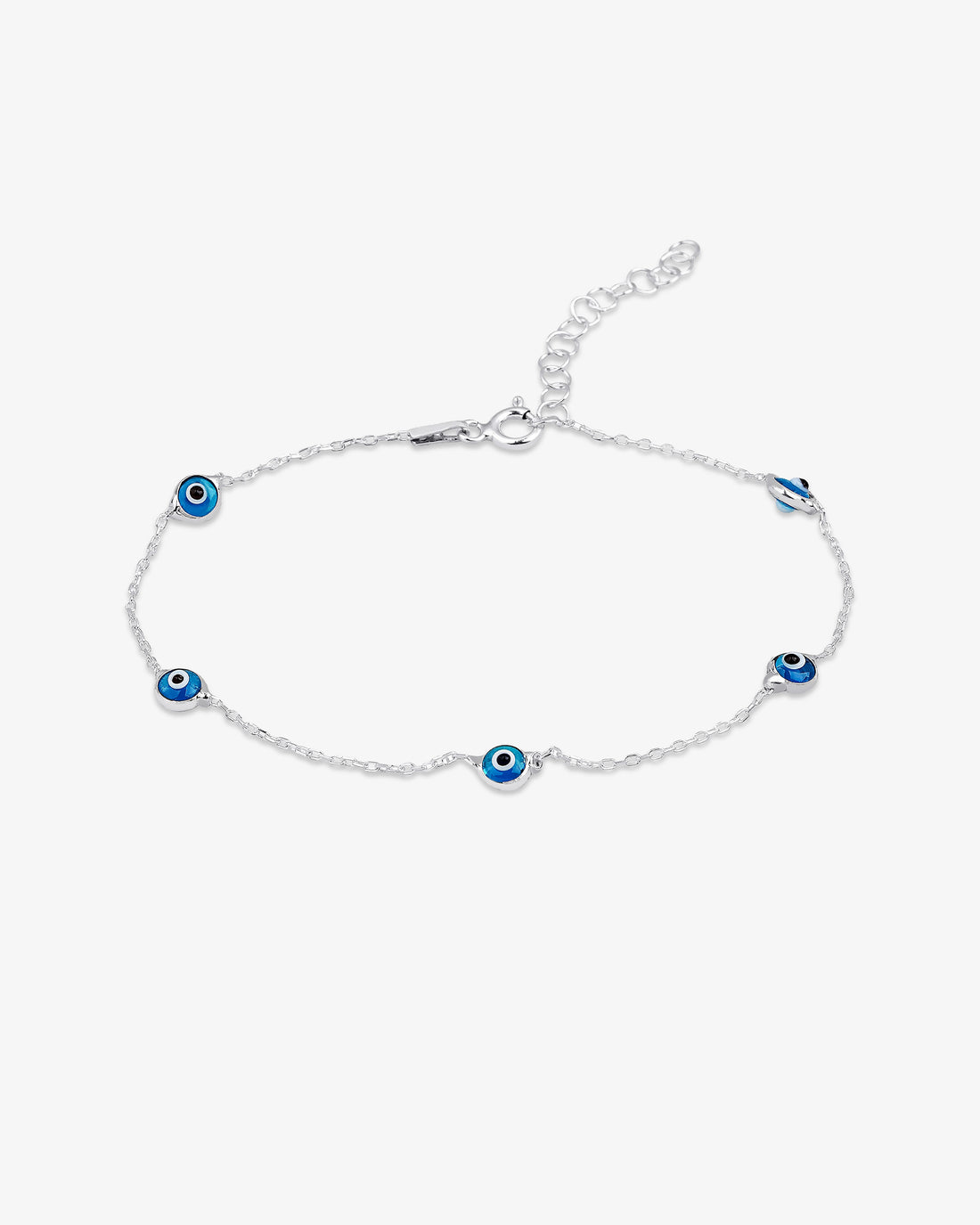 BLUE EVIL EYE BRACELET This sterling silver evil eye bracelet features blue glass beads designed...