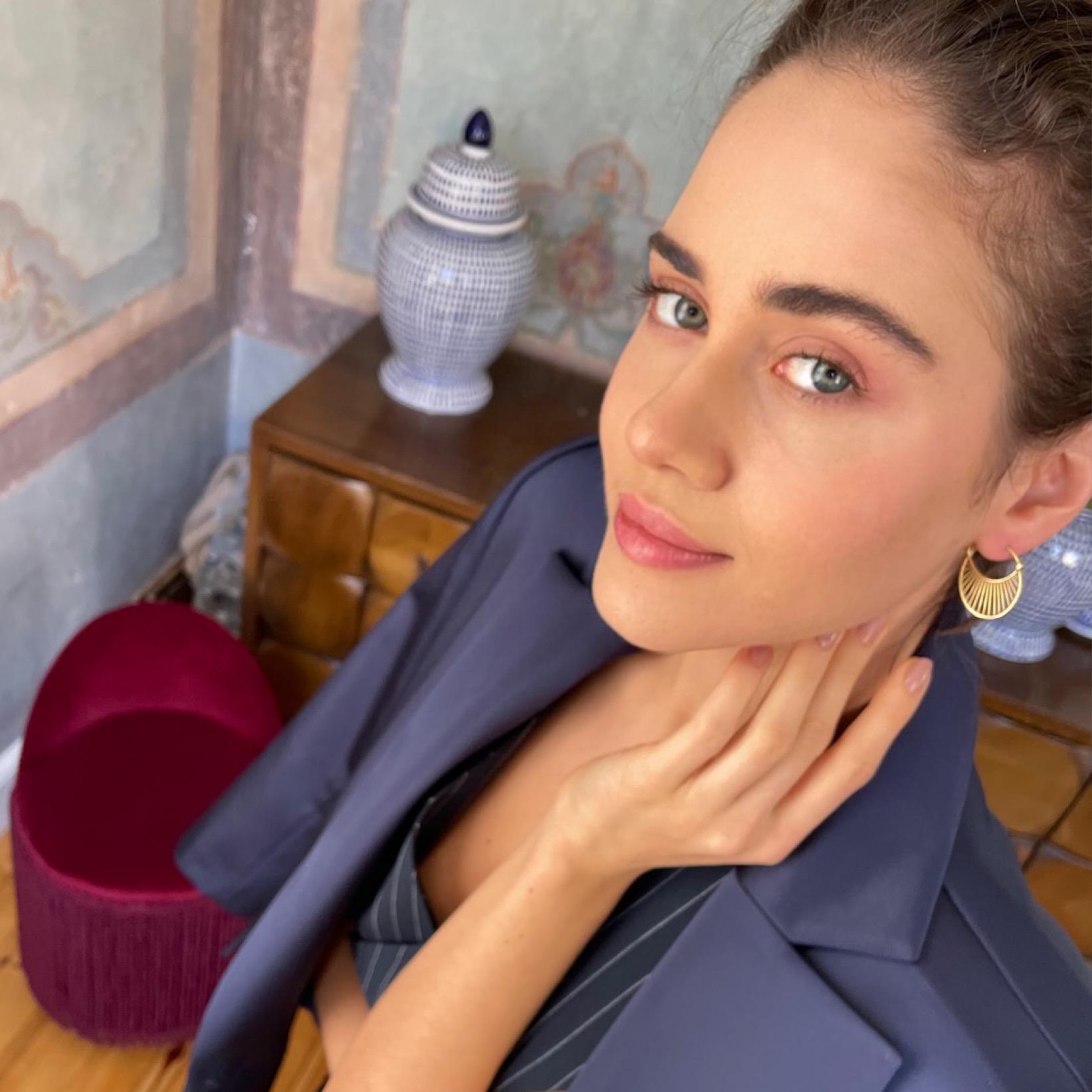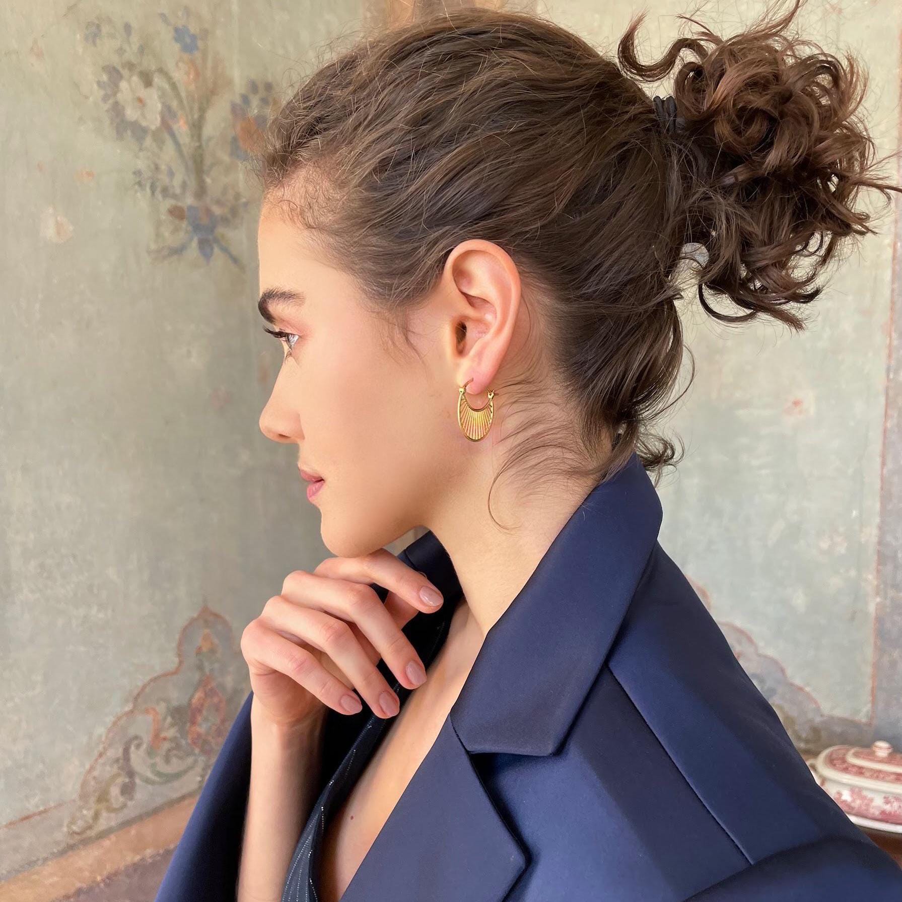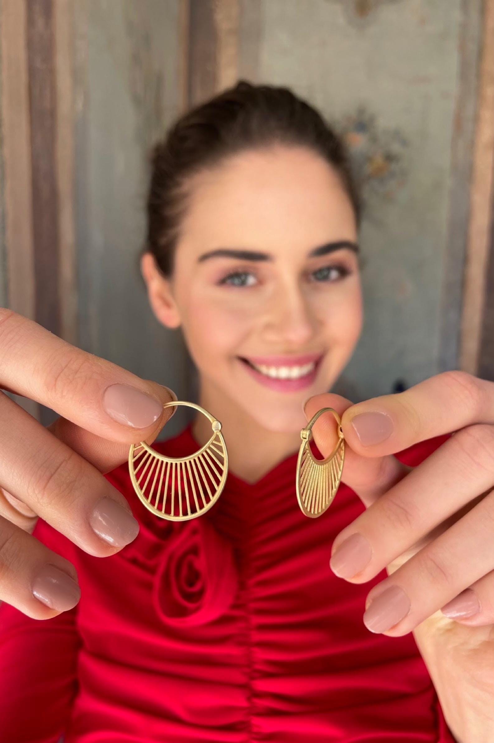 These elegant midi earrings feature a radiant sunlight-inspired design with a subtle antique feel. Crafted from 925 sterling silver and finished with gold plating, they add a warm glow to everyday looks and make a charming gift for her.