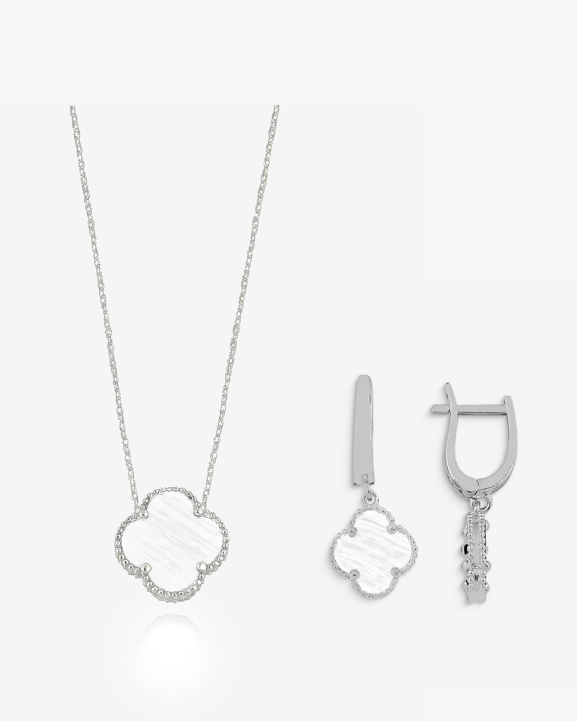 Black Clover Necklace & Earrings Set - Sterling Silver