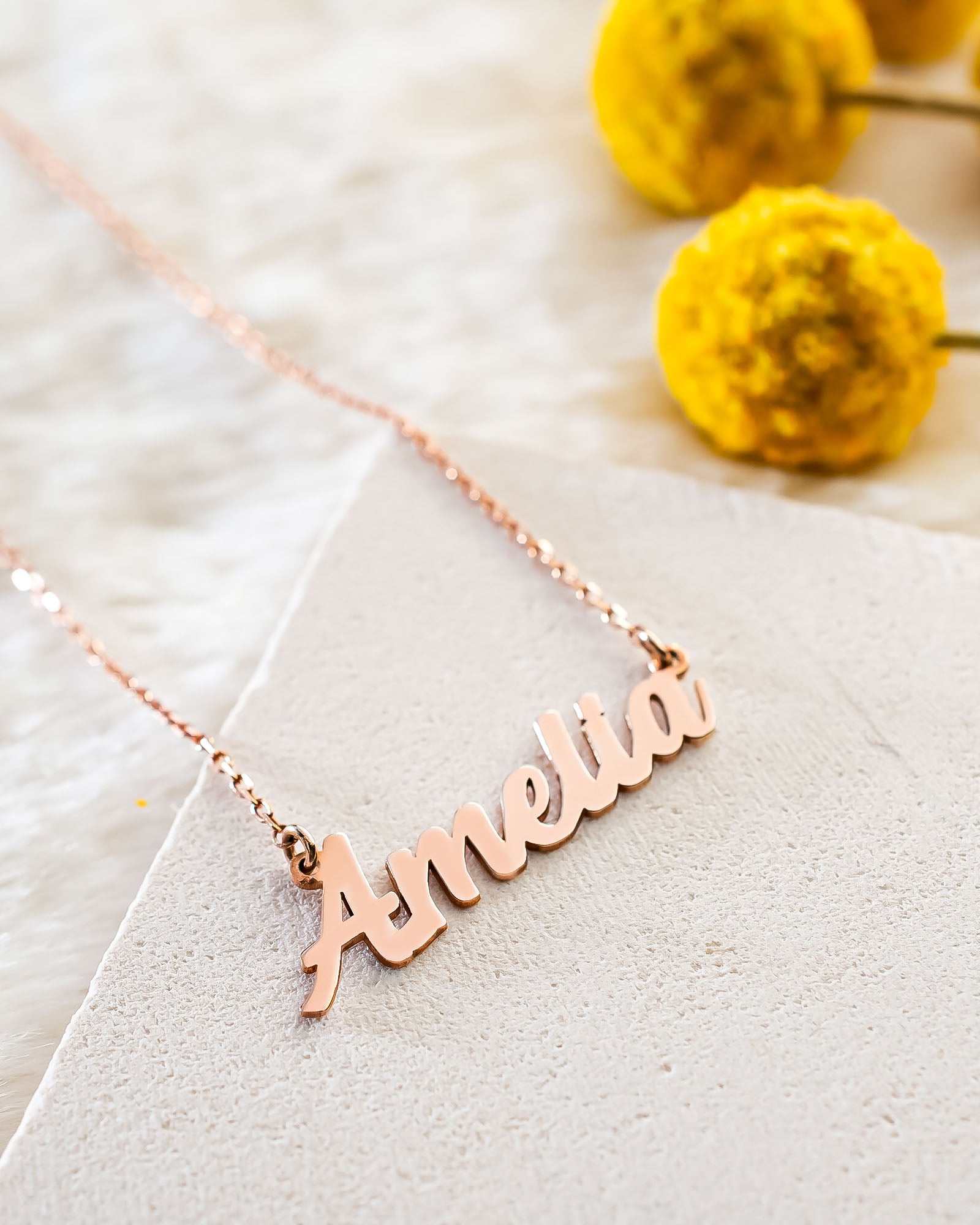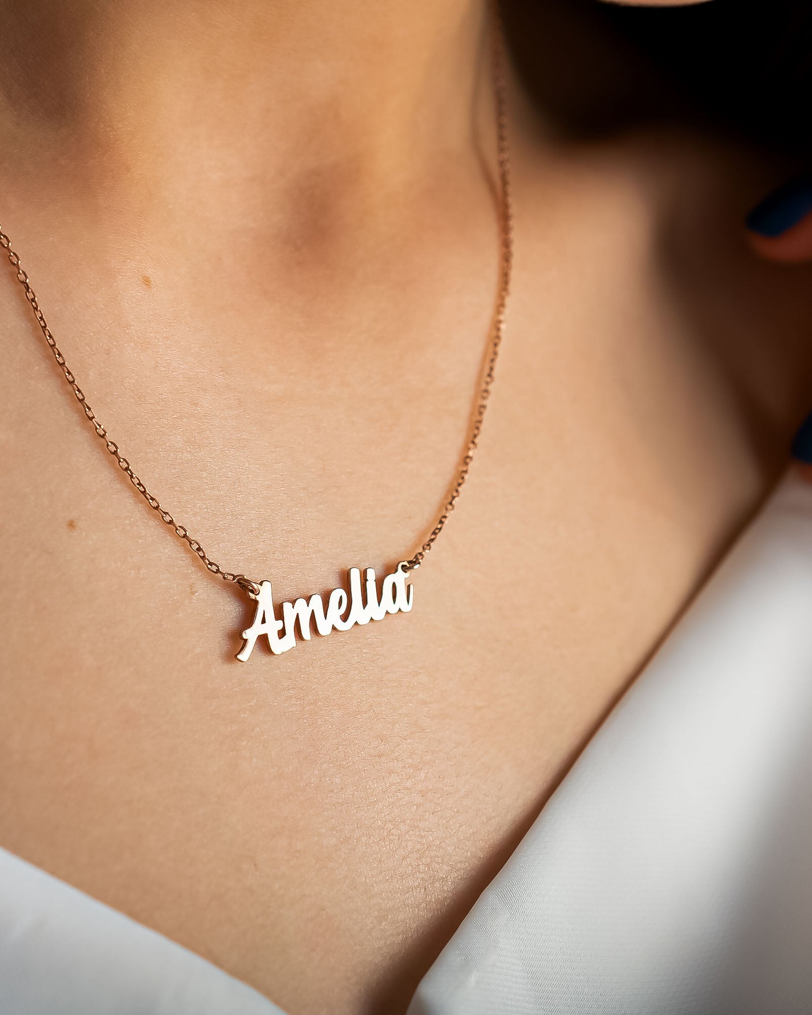 This minimalist name necklace is handcrafted from 925 sterling silver and designed for everyday elegance. Personalised with your chosen name and available in silver, gold, or rose gold finishes, it’s a timeless piece that makes a meaningful gift. Lightweight and delicate, it layers beautifully or shines on its own.