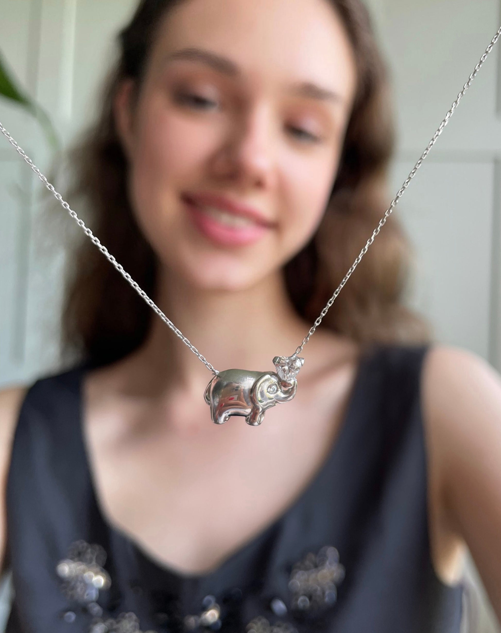 This adorable elephant necklace is crafted from 925 sterling silver, making it a meaningful and stylish accessory. Known as a symbol of luck and protection, the elephant pendant brings a touch of positivity to your everyday look. A perfect gift for animal lovers or anyone who appreciates delicate handmade jewelry.