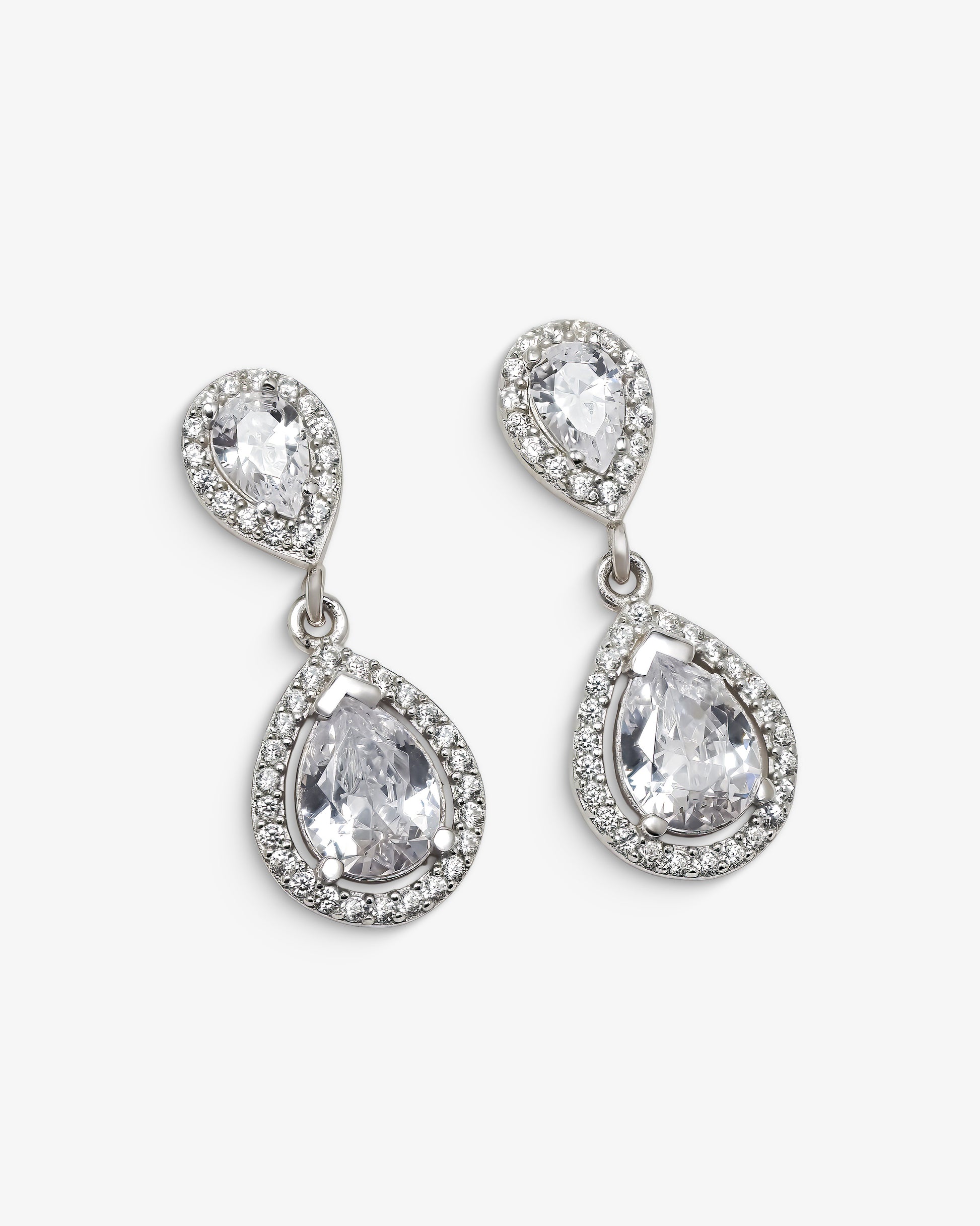 Featuring a classic teardrop silhouette, this timeless and sophisticated pair of earrings is detailed with shimmering cubic zirconia stones in an elegant halo setting. The refined drop design adds graceful movement and radiant sparkle, making it ideal for weddings, special occasions, and evening wear.