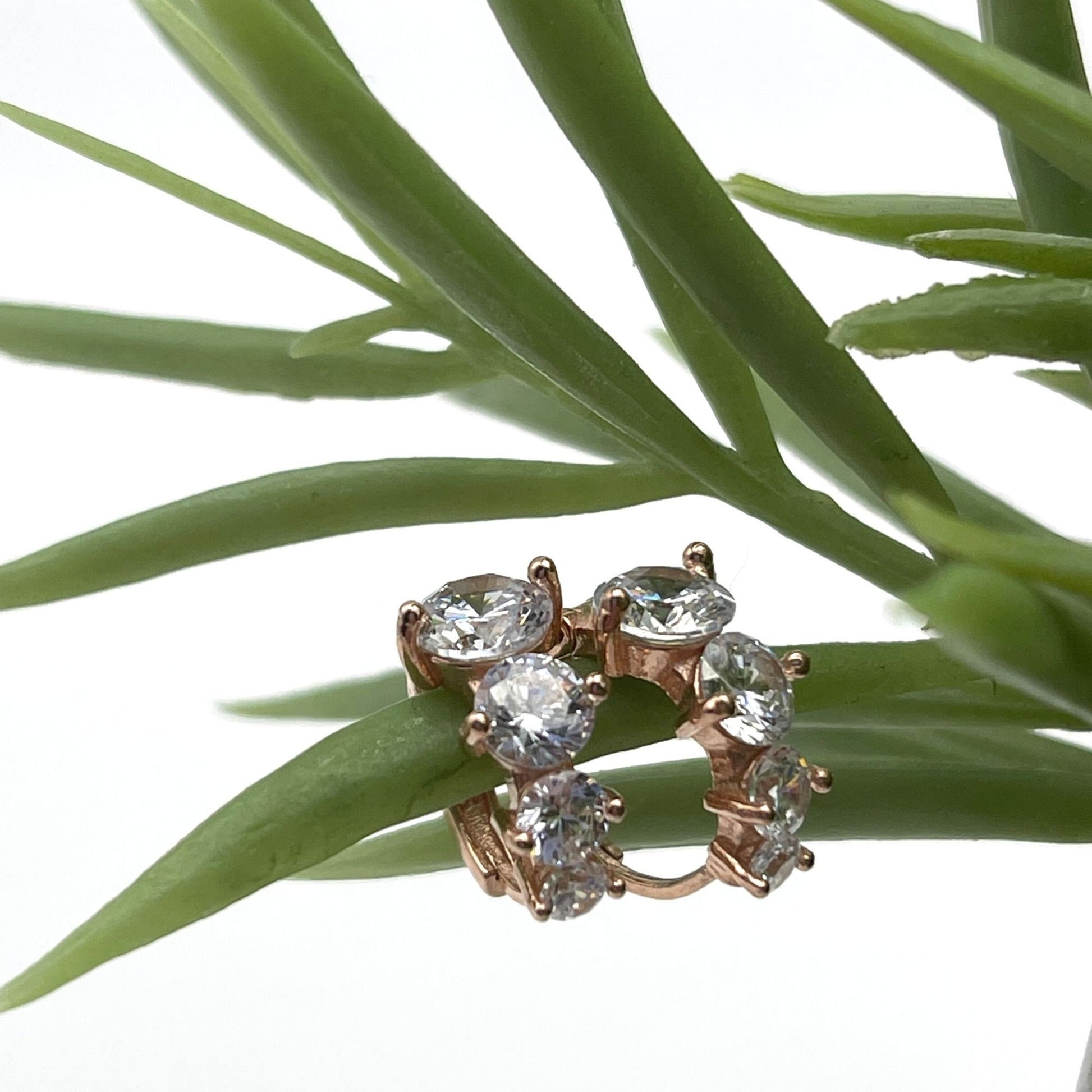 Rose Gold CZ Huggie Hoop Earrings - Sterling Silver