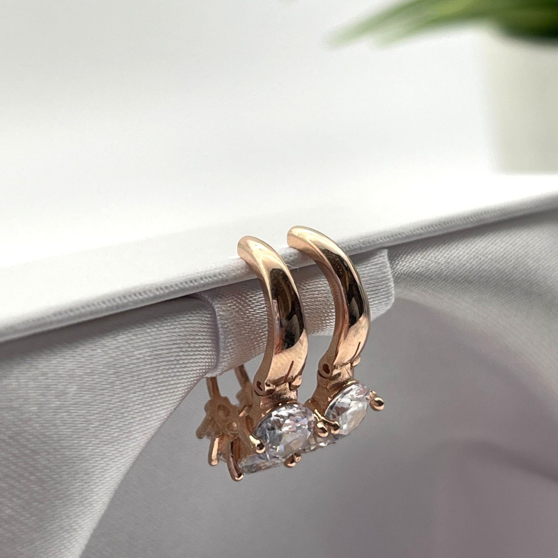 Minimal hoop earrings with white stones crafted in rose gold 925 sterling silver